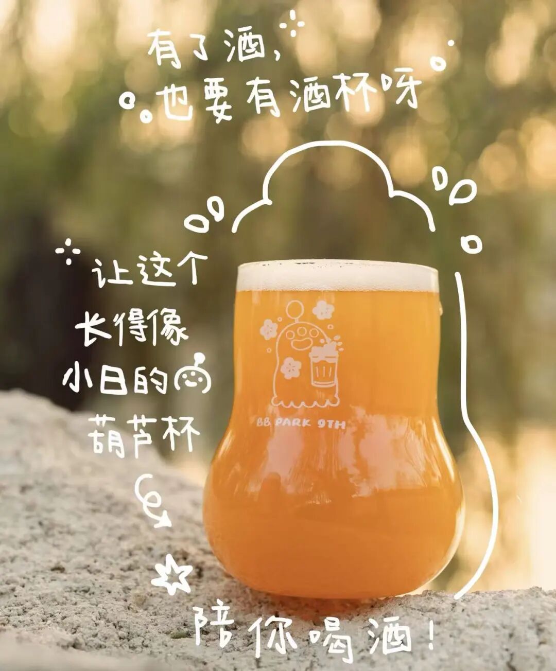 有了酒,怎么能没有酒杯呢,所以我们还做了九周年日谈定制酒杯。杯子形状独特,像一只宝葫芦,使用有质感的高硼硅材料,强度高也耐热,杯壁印有九周年特别小日logo。