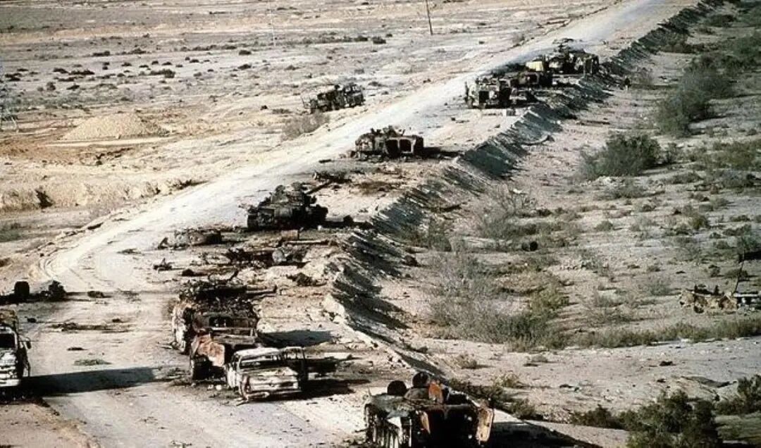 地面战仅用100小时就结束。2月26日,萨达姆下令伊军撤出科威特,但在科威特至伊拉克边境的“死亡公路”上,联军战机对撤退的伊军车队进行无差别轰炸,造成约2000辆车辆被毁,1.2万名伊军士兵死亡。2月28日,布什总统宣布停火,海湾战争结束。
