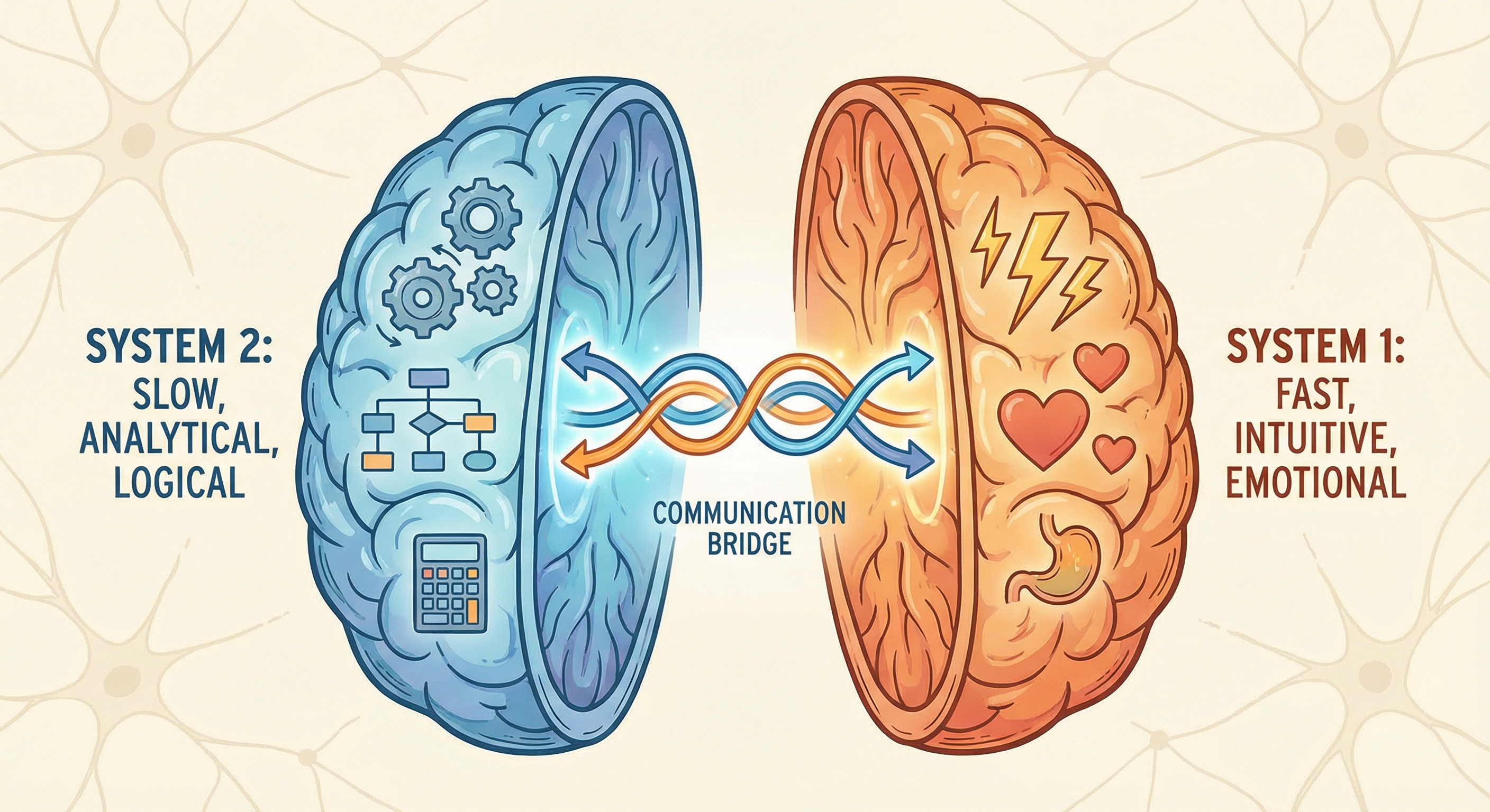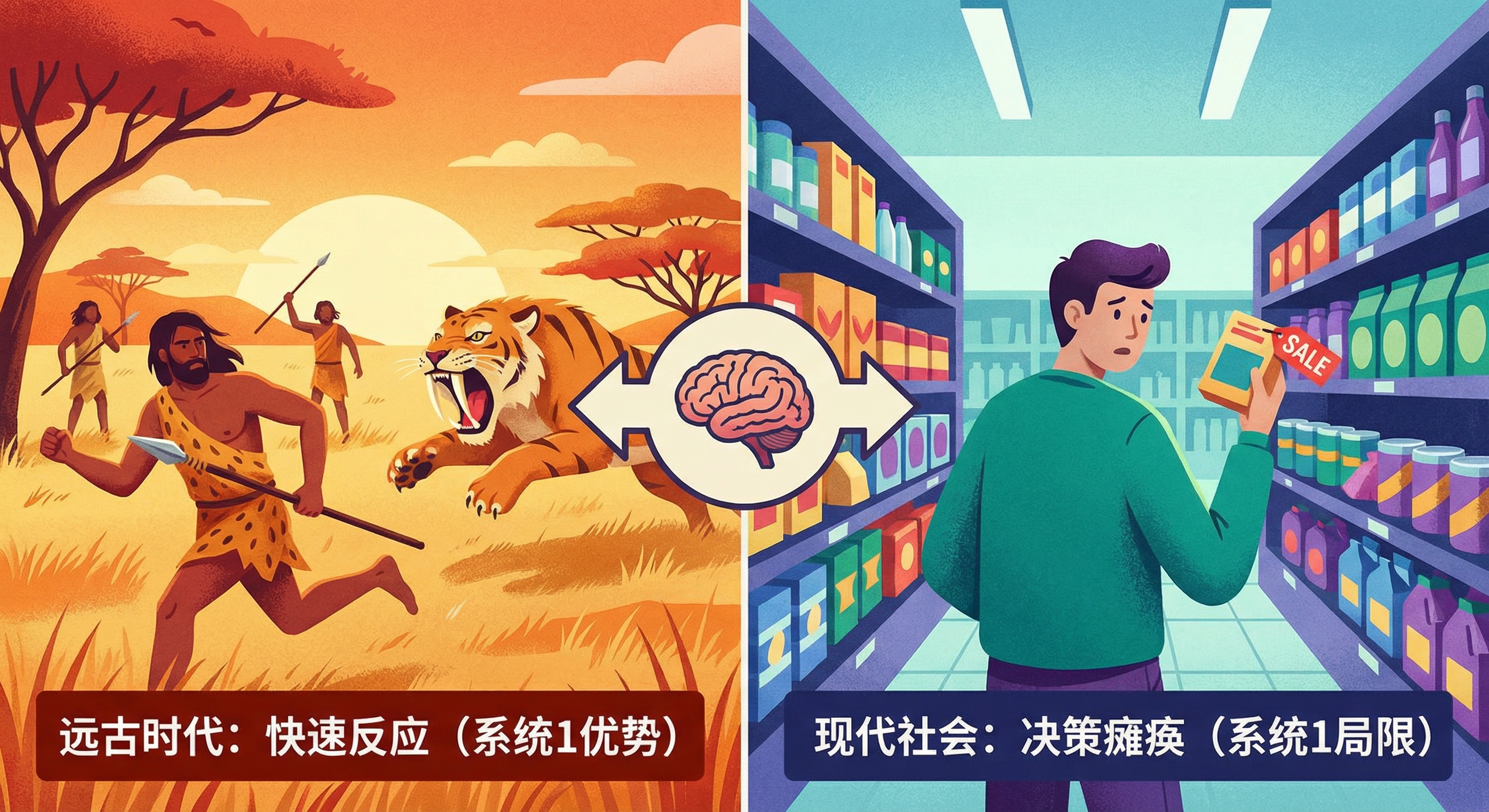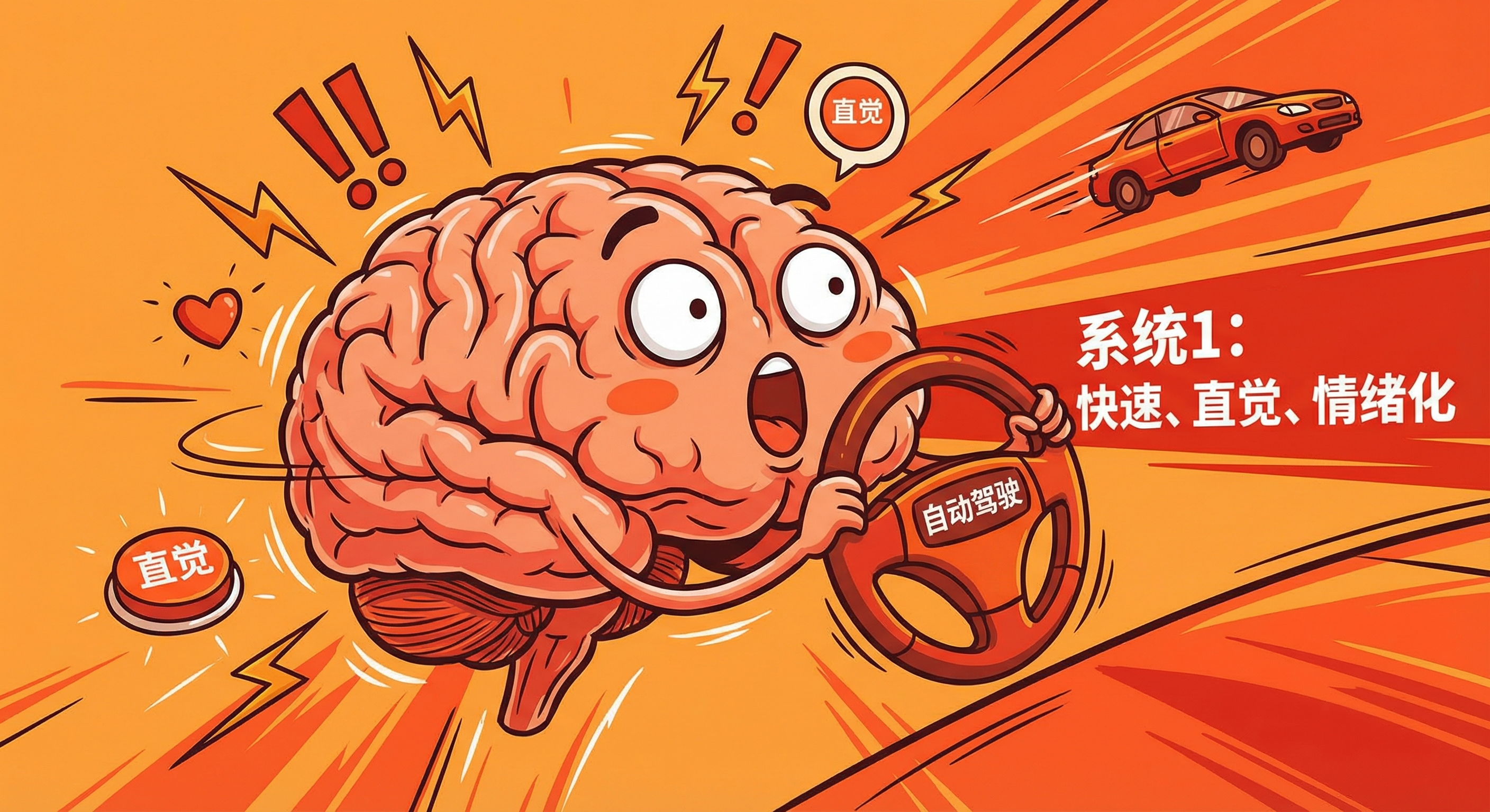 系统 1是快速、直觉、情绪化的 “自动驾驶仪”,靠经验反应,高效却易被表象迷惑;