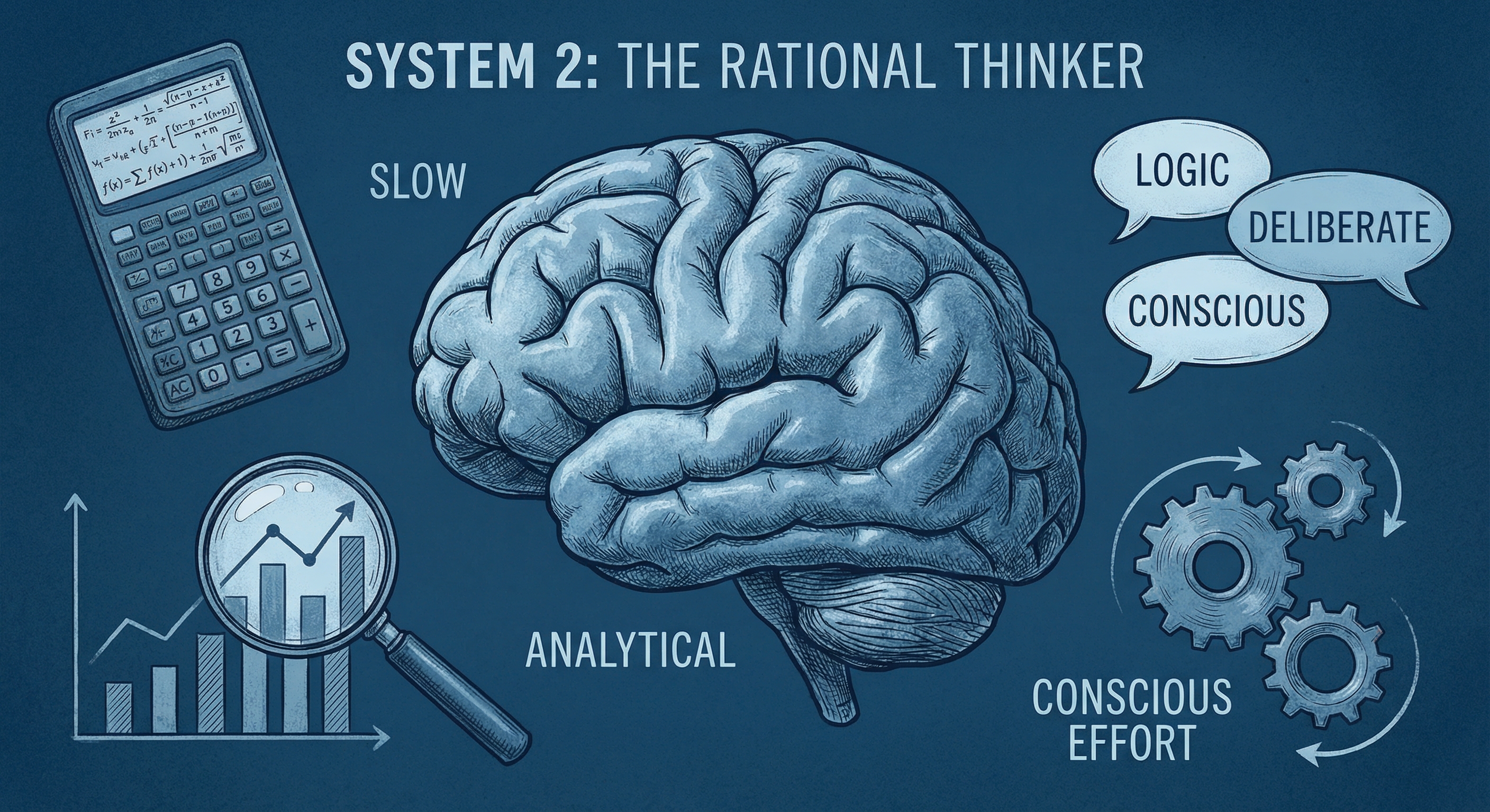 系统 2是缓慢、分析、理性的 “管家”,需主动调用,能处理复杂问题但耗能高、偏 “懒惰”。