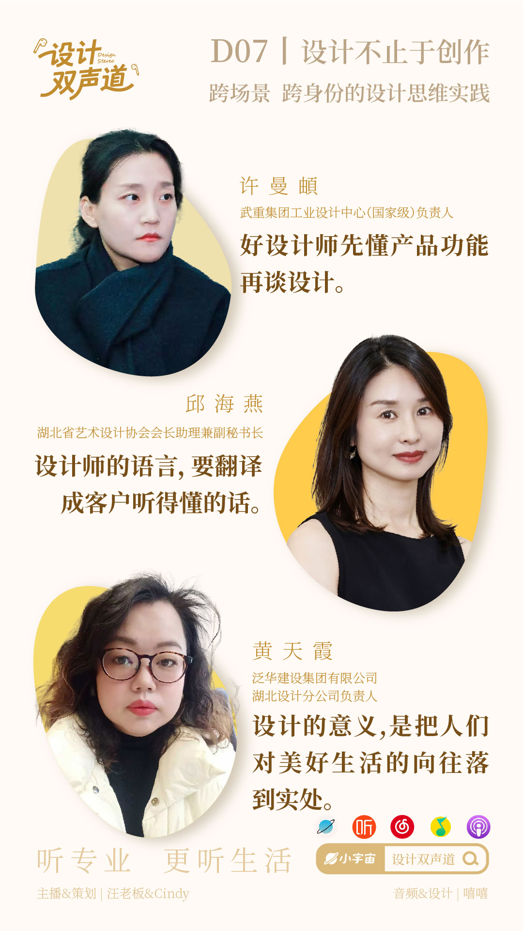 今天,我们特别邀请了三位老朋友。她们来自设计相关的不同领域:从国企工业设计跨界政府挂职的职场妈妈,非科班出身却深耕设计行业的全能从业者,还有以市政设计点亮城市美好生活的设计企业负责人。她们以各自的方式,践行着 “设计不止于创作” 的理念,也生动诠释着:设计,本就渗透在工作与生活的每一处细节里。