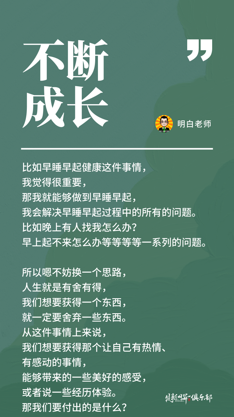 就比如早睡早起健康这件事情,我觉得很重要,那我就能够做到早睡早起,我会解决早睡早起过程中的所有的问题。比如晚上有人找我怎么办?早上起不来怎么办等等等等一系列的问题。
