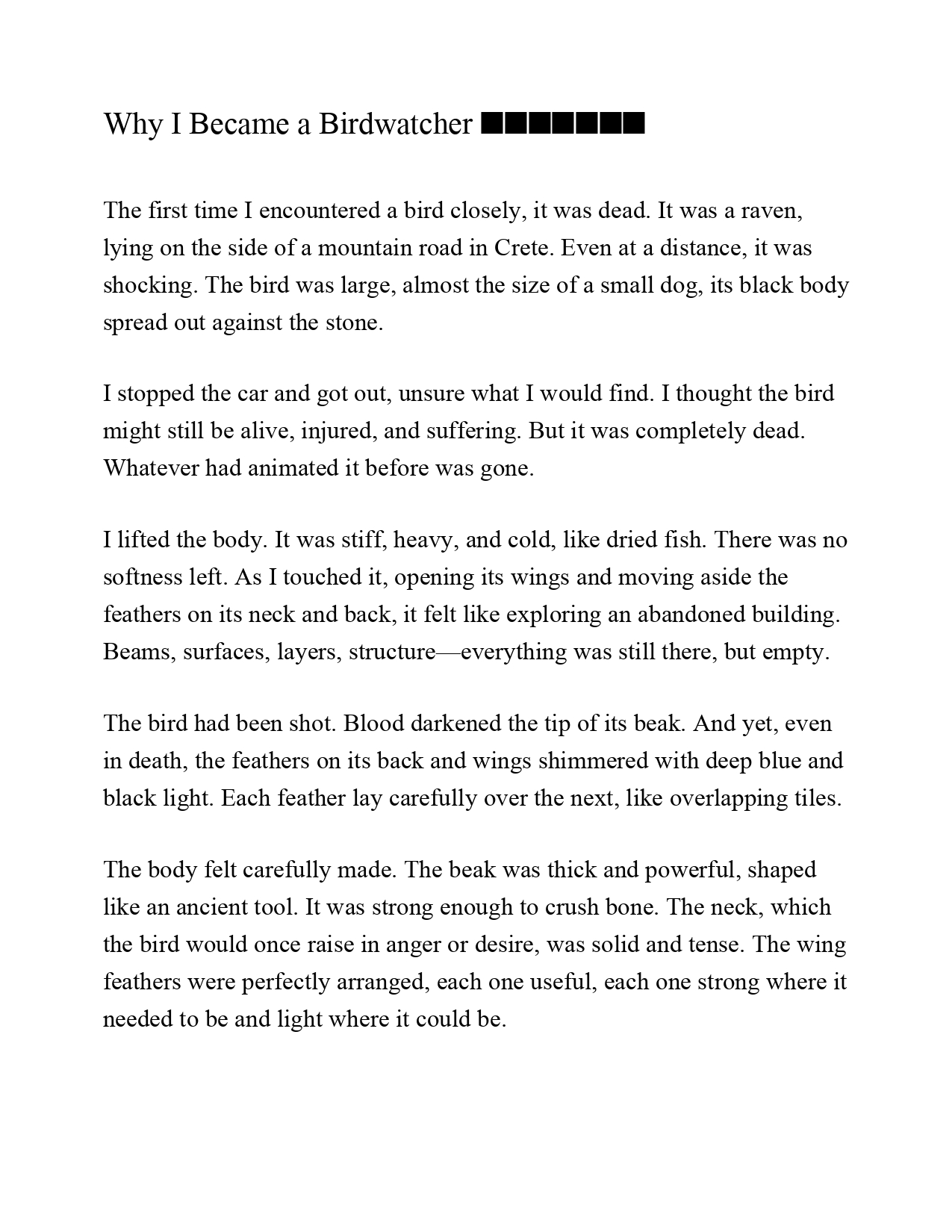 Why I Became a Birdwatcher : Learning to look past indifference and into the mystery of lifeby Adam Nicolson, September 25, 2025 Transcript 文本Rein
