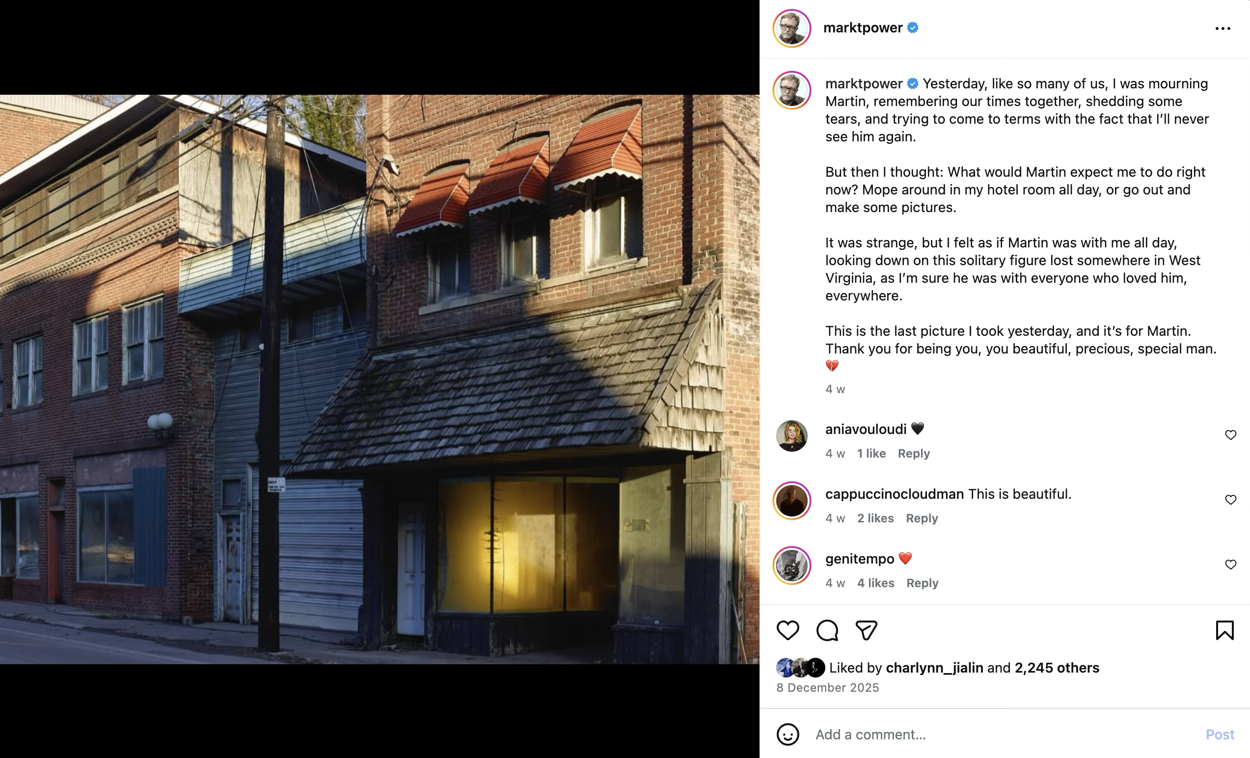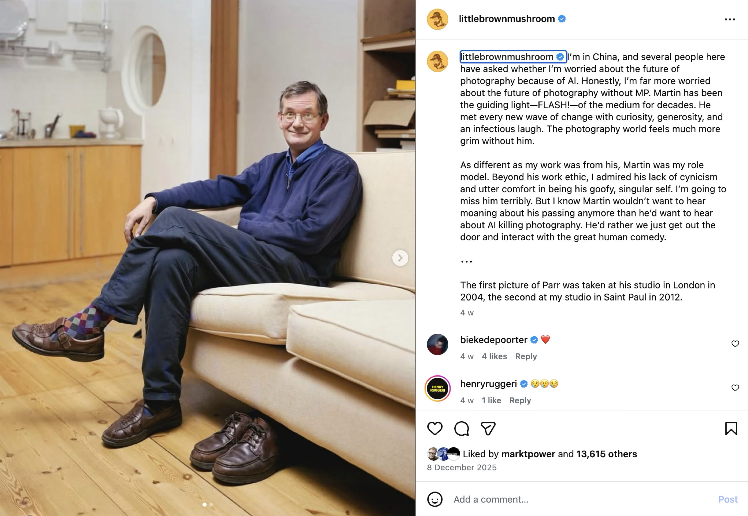 - Mark Power在社交媒体上对Martin Parr的悼念: