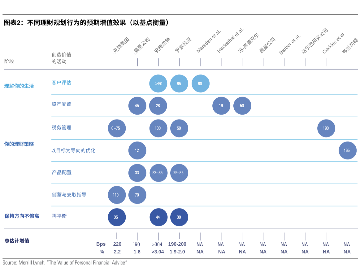 虽然不同机构给出的具体数字不一样,但结论非常一致——理财规划创造的价值,本质上是对投资者 Gamma 的系统性优化,而不是额外寻找 Alpha。比如: