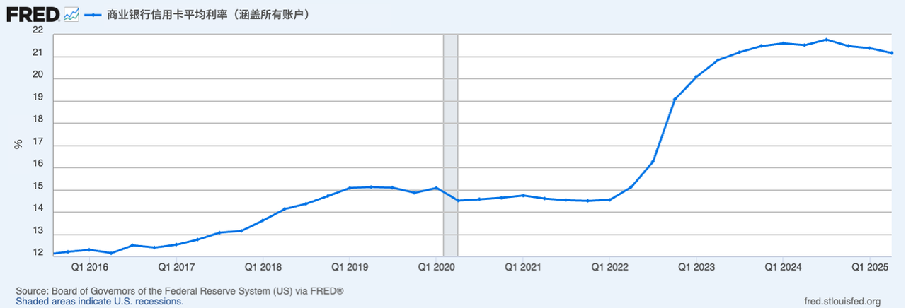 过去 10 年,美国信用卡的平均借款利率大约为16%。