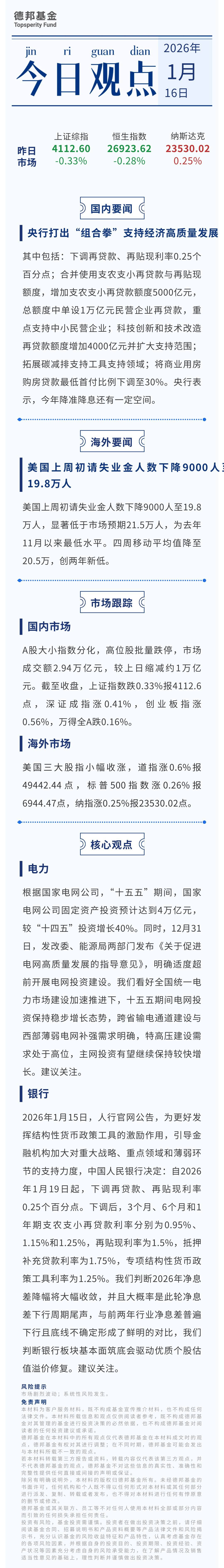 1月16日财经速递,带您最快跟踪板块表现和市场资讯!