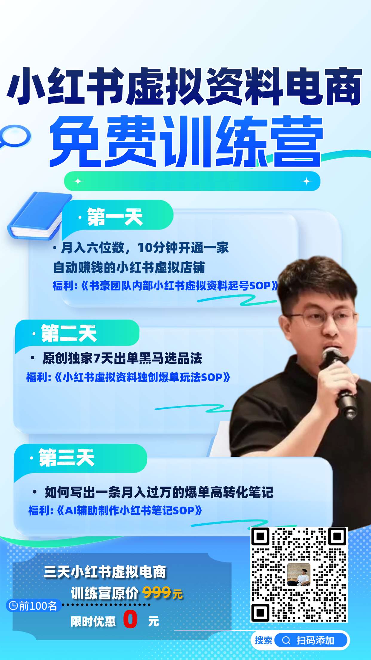 新年搞钱特别福利:小红书电商开店从0到1的手册(内部版)+原价999元的三天直播训练营