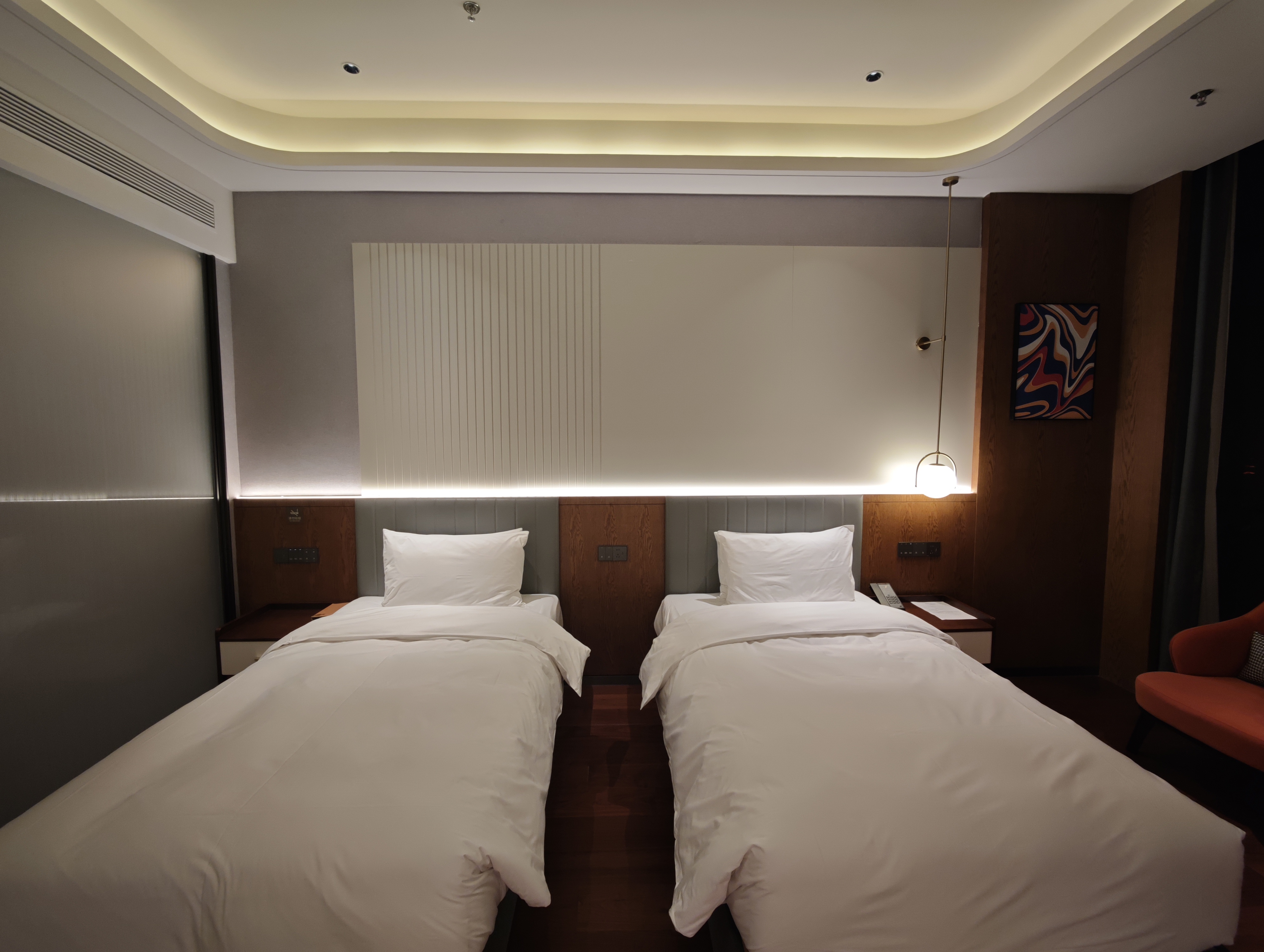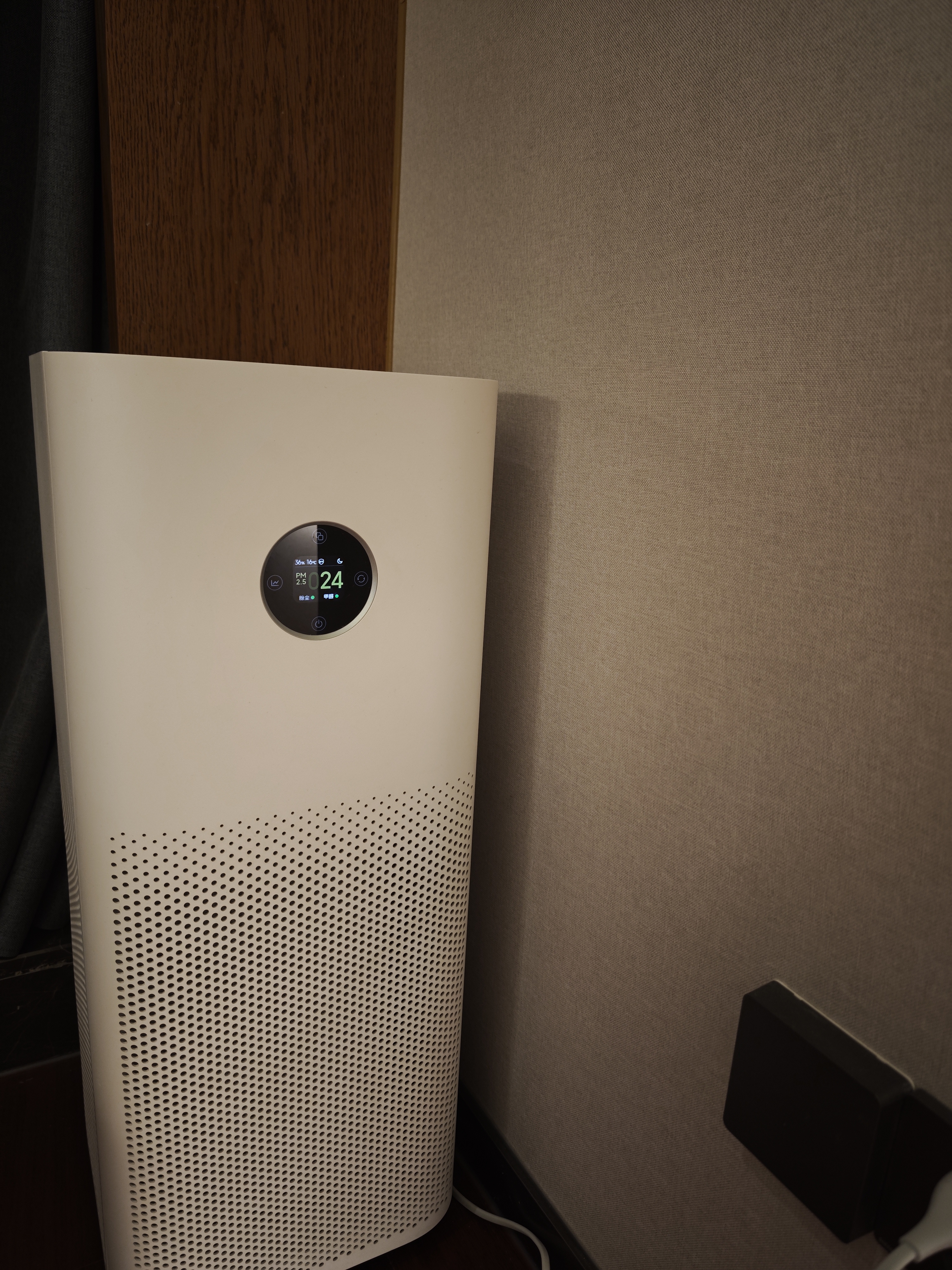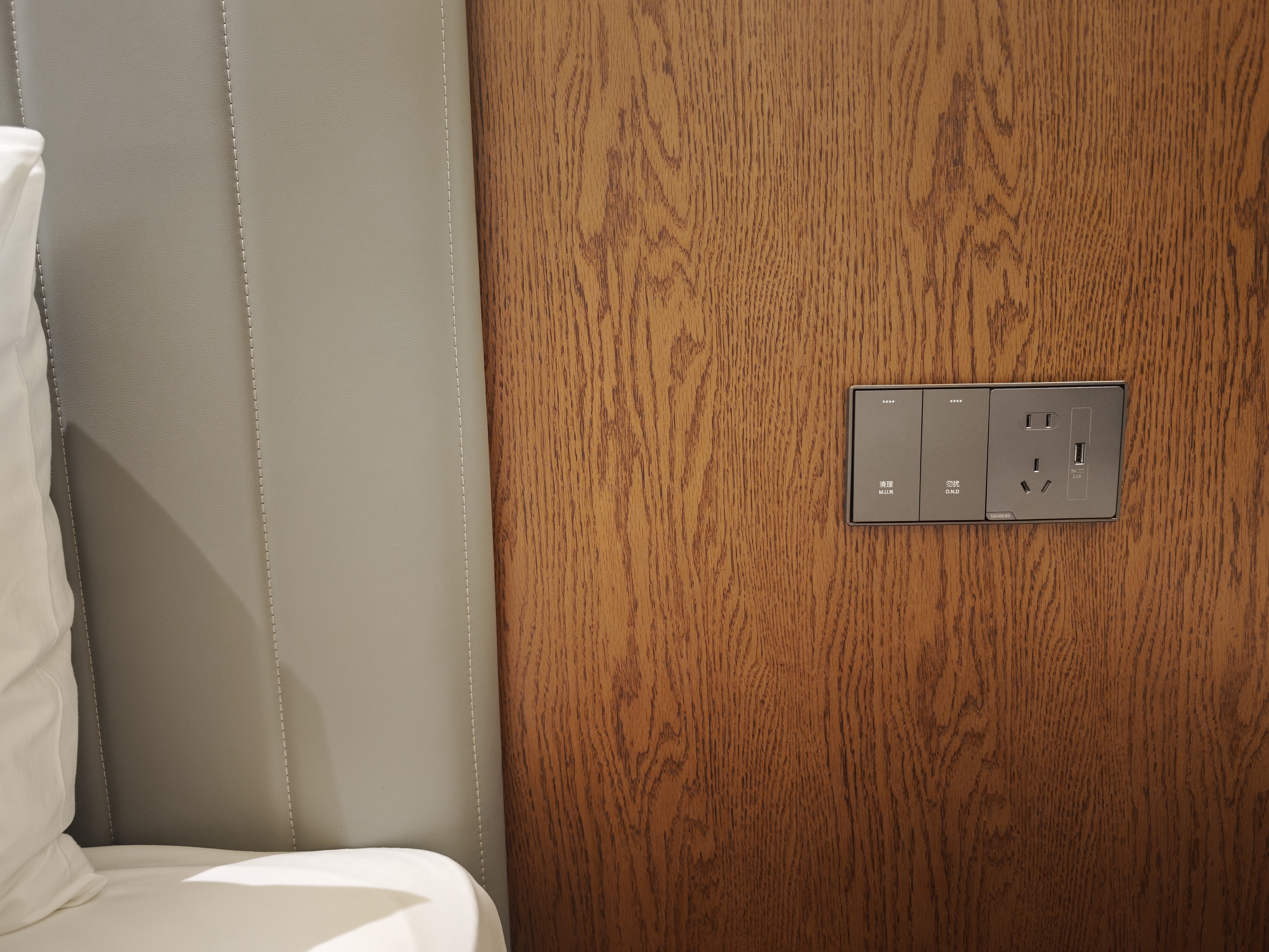 办理入住后直奔房间,推开门就被惊喜到了:空间大得离谱,床铺得平平整整,床头的皮质软包透着高级感,还有房间的数控做得太好了,躺在床上不但能给手机充电、开关灯,甚至连“勿扰”和“清理”都安排进去了,简直是懒人狂喜!而且还配了空气净化器,对于我这个鼻炎患者太友好了。