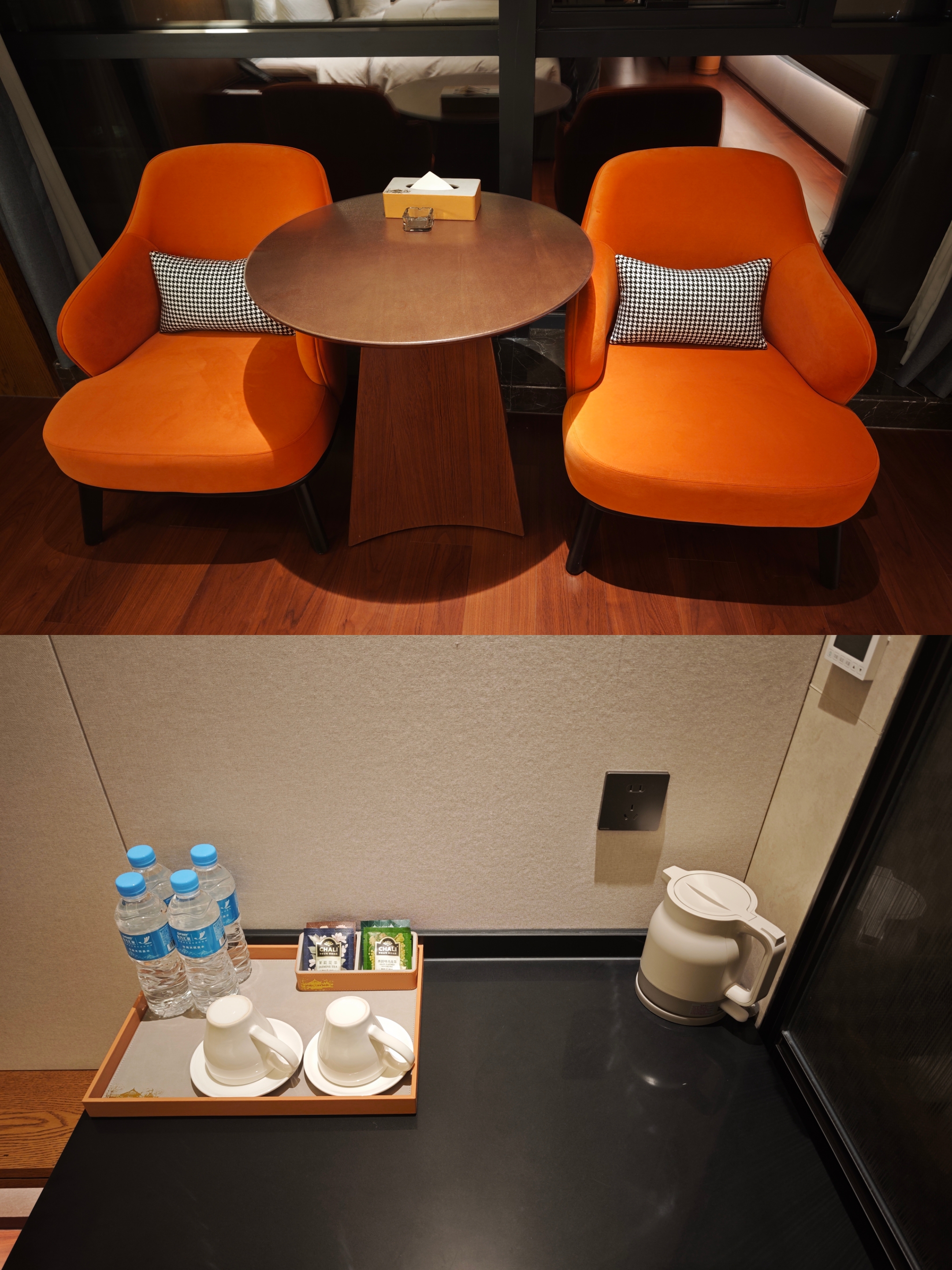 最贴心的是MINI吧,免费矿泉水、茶包、咖啡一应俱全,窗边的橙色沙发特别适合傍晚喝杯茶放空。衣柜里还藏着一把雨伞,突然变天也不怕淋雨,这种润物细无声的服务真的暖到心里。