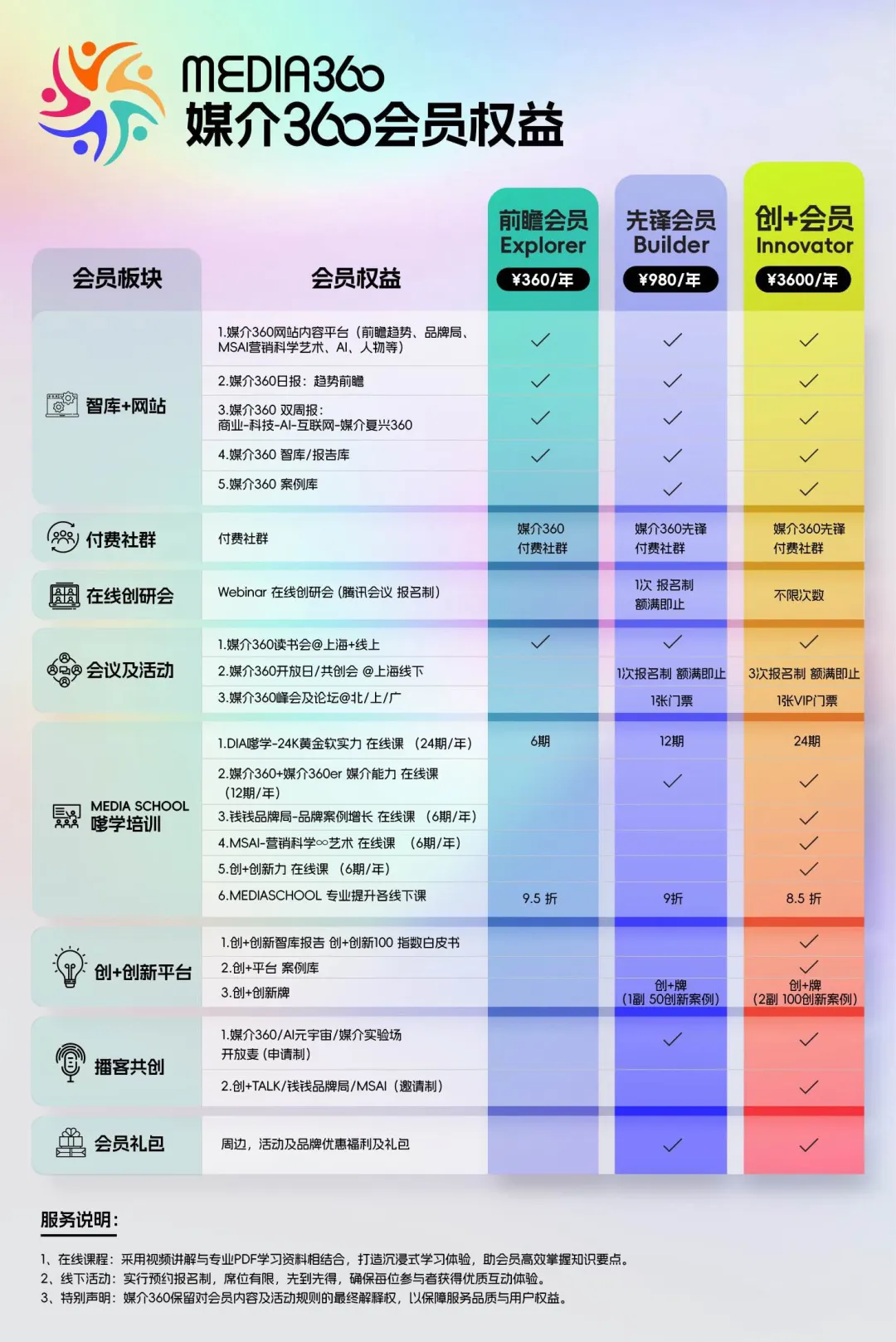 欢迎进入媒介360生态场域——你可以是会员、读者、共创者或合作方。我们期待与你一同成为AI+增强人类,360°创新增长成长。
