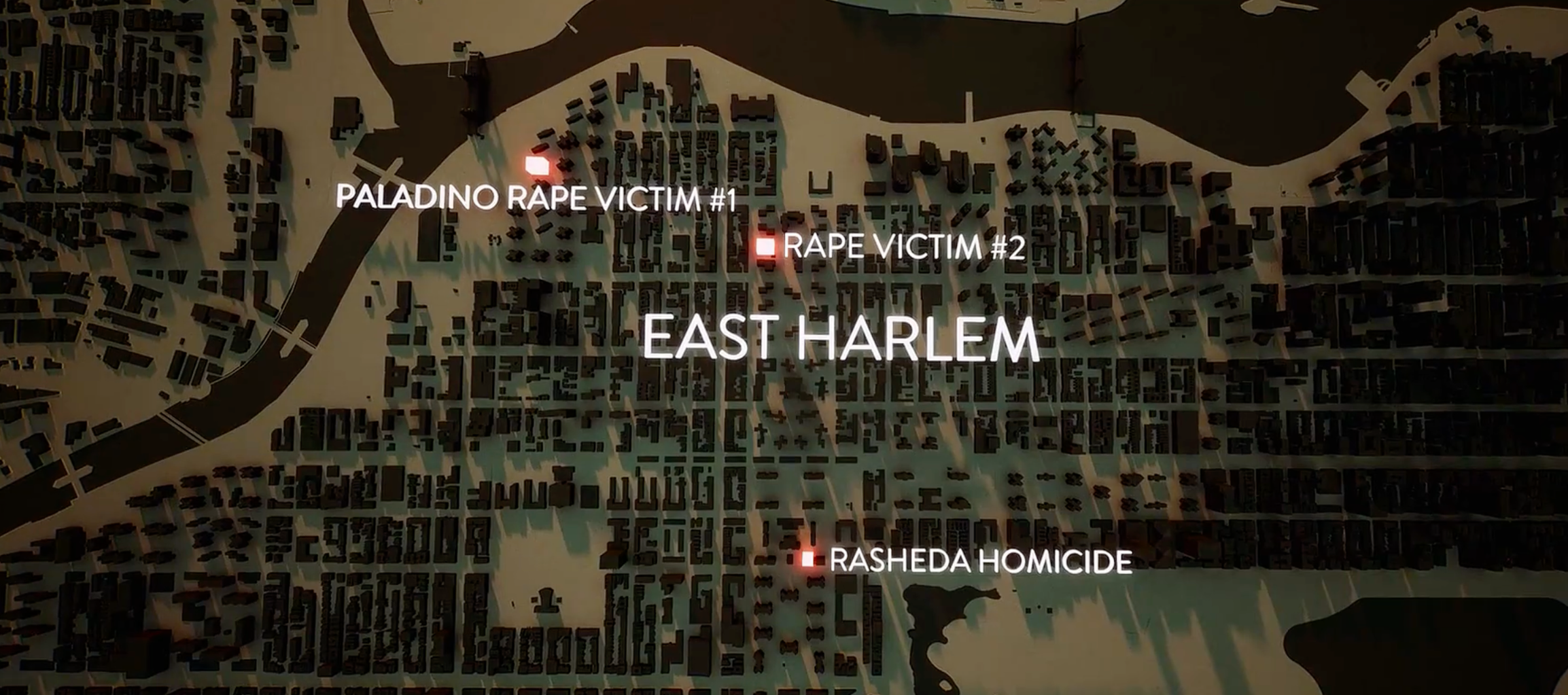 两名幸存的性侵案受害者跟纽约警局的画像师一起把嫌疑人的脸给画出来了。随后这张画像立即被制作成通缉海报,代替Rasheda的那张海报出现在沿街的每个商店橱窗里和路边的电线杆上。东哈莱姆的每条街道都有。
