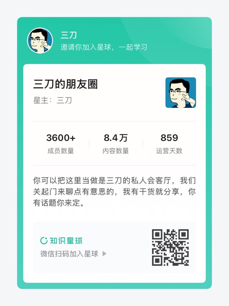 想与三刀1对1交流,扫码加入知识星球: