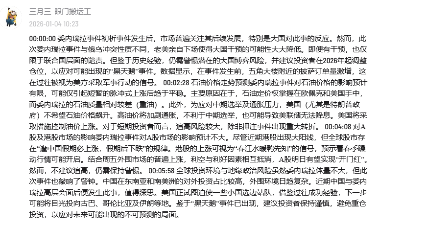 结合伊朗和委内瑞拉的事件,分析了星链等技术在未来突发事件中可能扮演的角色。在传统断网手段失效的情况下,通信技术的发展可能为冲突方提供新的干预方式。考虑到中国在这一领域的潜在需求,通信安全板块未来可能受到更多关注,将在后续节目中进一步详细阐述。