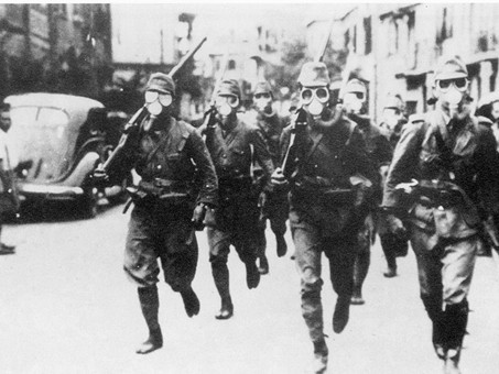 淞沪会战中穿戴防毒面具的日军(图片来源:黑龙江省社会科学院)