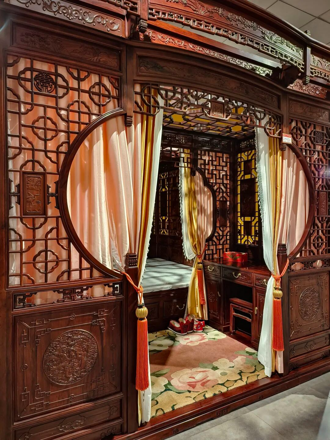 拔步床,又称八步床,是中国传统家具中体型最大的床类,出自《鲁班经匠家境》记载的大床与凉床两类。其结构特征为床体外设木制平台形成回廊空间,配有地坪、门栏杆及围栏,形同房中套屋。