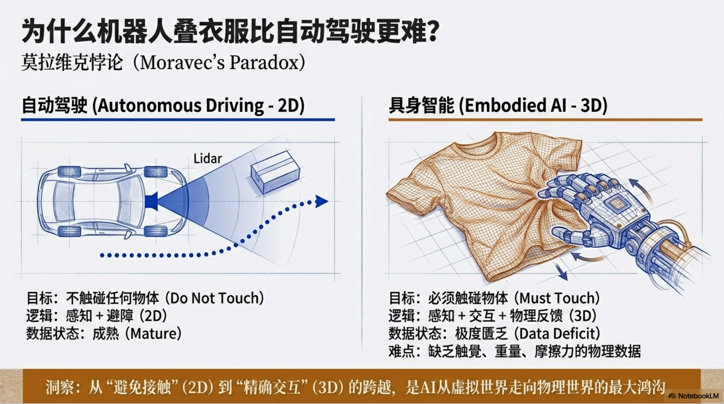 - 与自动驾驶相比,机器人需在不固定场景下与多类型物体进行三维交互,难度更高。