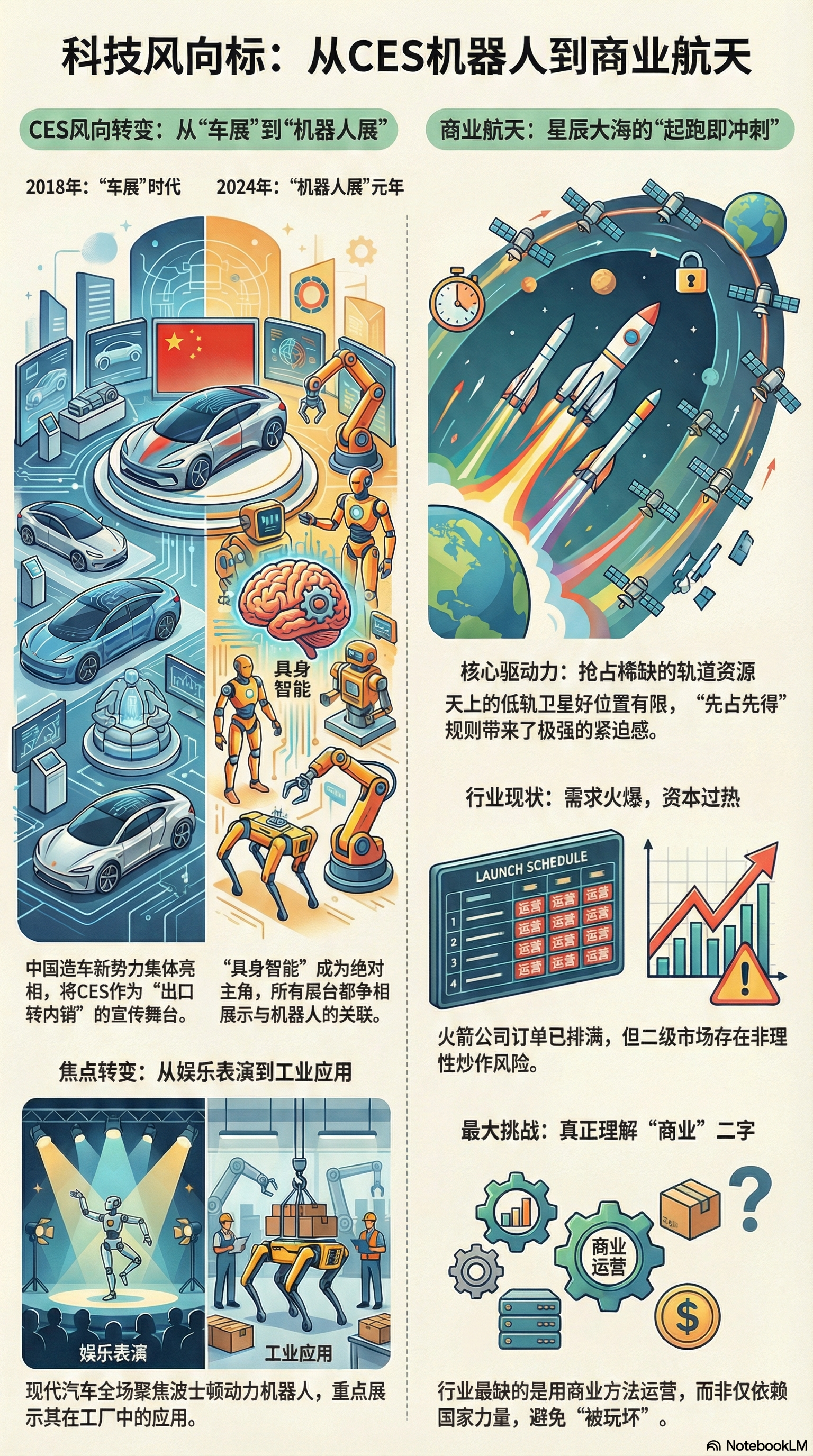 商业航天市场有没有泡沫?2026年CES消费电子展有哪些新发现?嘉宾@花生 刚从美国飞回上海,就来和我们第一时间深度揭秘所见所闻;同时作为早期中国商业航天研究报道记者,他指出尽管产业前景广阔,但当前市场估值可能存在泡沫,需谨慎对待。
