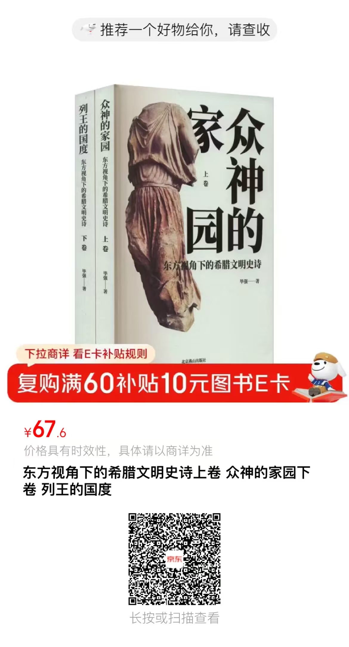 此书既是一部让中国读者了解希腊文明前世今生的通史,又是一本有深度的希腊旅行伴游读物。各位如对古典历史和古希腊主题感兴趣,京东当当等各大平台搜索书名《东方视角下的希腊文明史诗》即可。