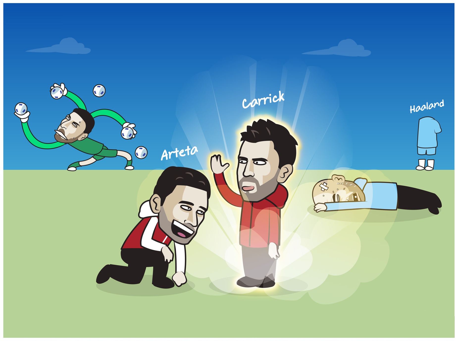 曼联新帅卡里克首秀,比赛中曼联上半场两粒进球都因为越位被吹掉,马奎尔头球击中横梁,多纳鲁马连续贡献神扑,下半场姆贝莫和多古先后破门,替补登场的库尼亚送出助攻,最终曼联主场2-0战胜同城对手曼城,取得近5场比赛的首场胜利。