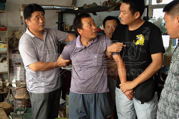 梁家富(左二)(图片来自水母网,烟台日报传媒集团记者李珑摄影)