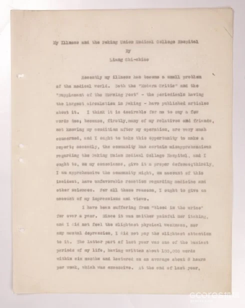 ▲ 梁启超用英文书写的《我的病与协和医院》