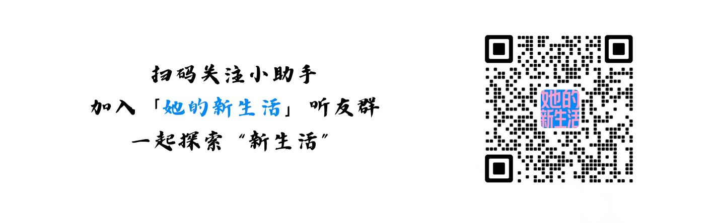 添加她的新生活小助理(微信:hernewlife),加入股东听友群,一起走进新生活吧!