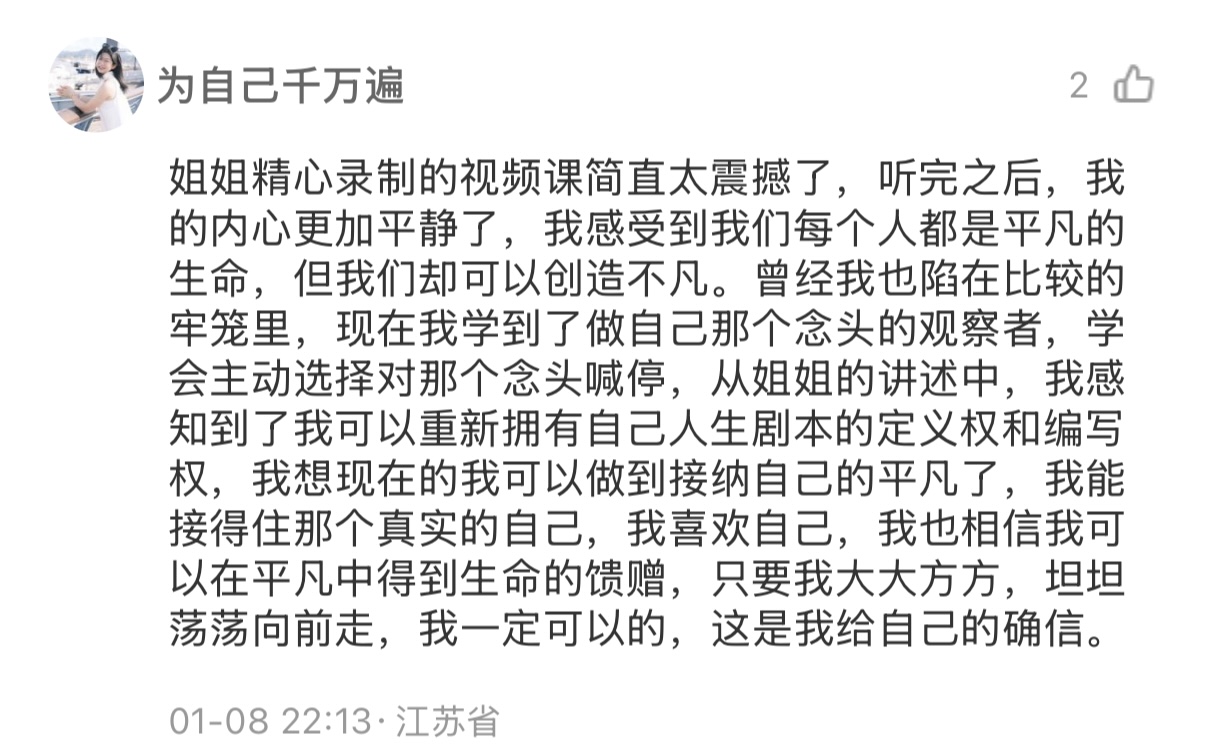 如果你也想分享自己的故事,或者有任何想和我们交流的问题。这里还有同频共振的伙伴,各行各业的精英,有大家真诚的交流,也有老师的用心答疑。社群内,还为你准备了孔玮老师的独家成长资料,进群即可领取,包括《个人成长必读书Top10》与十年课程精华合集《生命成长智慧地图》。真诚期待你的到来,一起读万卷书,行万里路,点一盏灯。