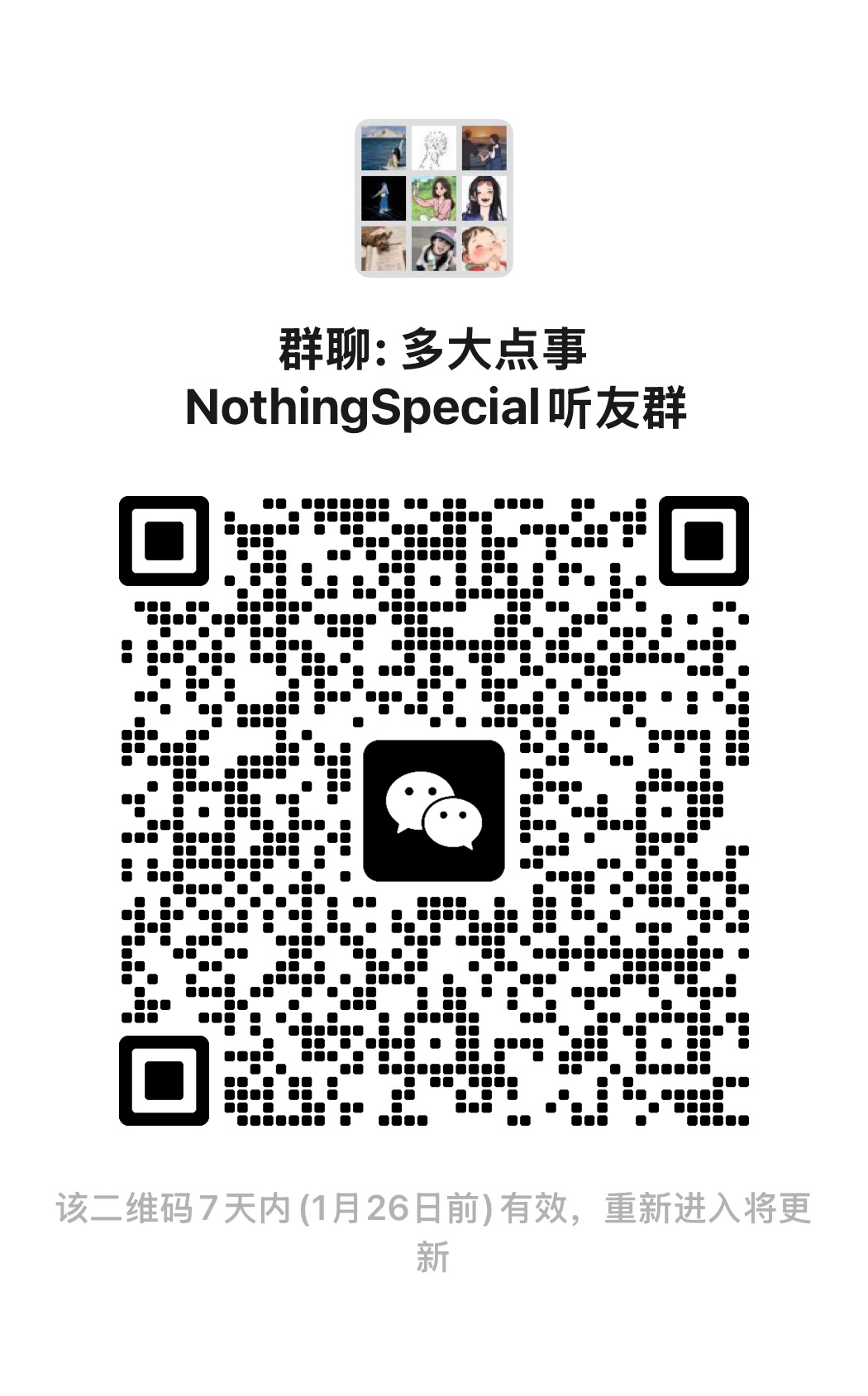 Hello 大家好,我们的栏目成立听友群啦!七七和小满一直以来都非常感谢大家对我们栏目的关注,也希望和听众朋友们建立联系,听听你们对节目的感受,有没有希望我们看到和分享的书籍和电影。希望大家可以扫描下方的二维码加入微信群,我们在这里期盼你的加入哦!如果有任何问题,也欢迎添加小满的私人微信:diana_tong_26