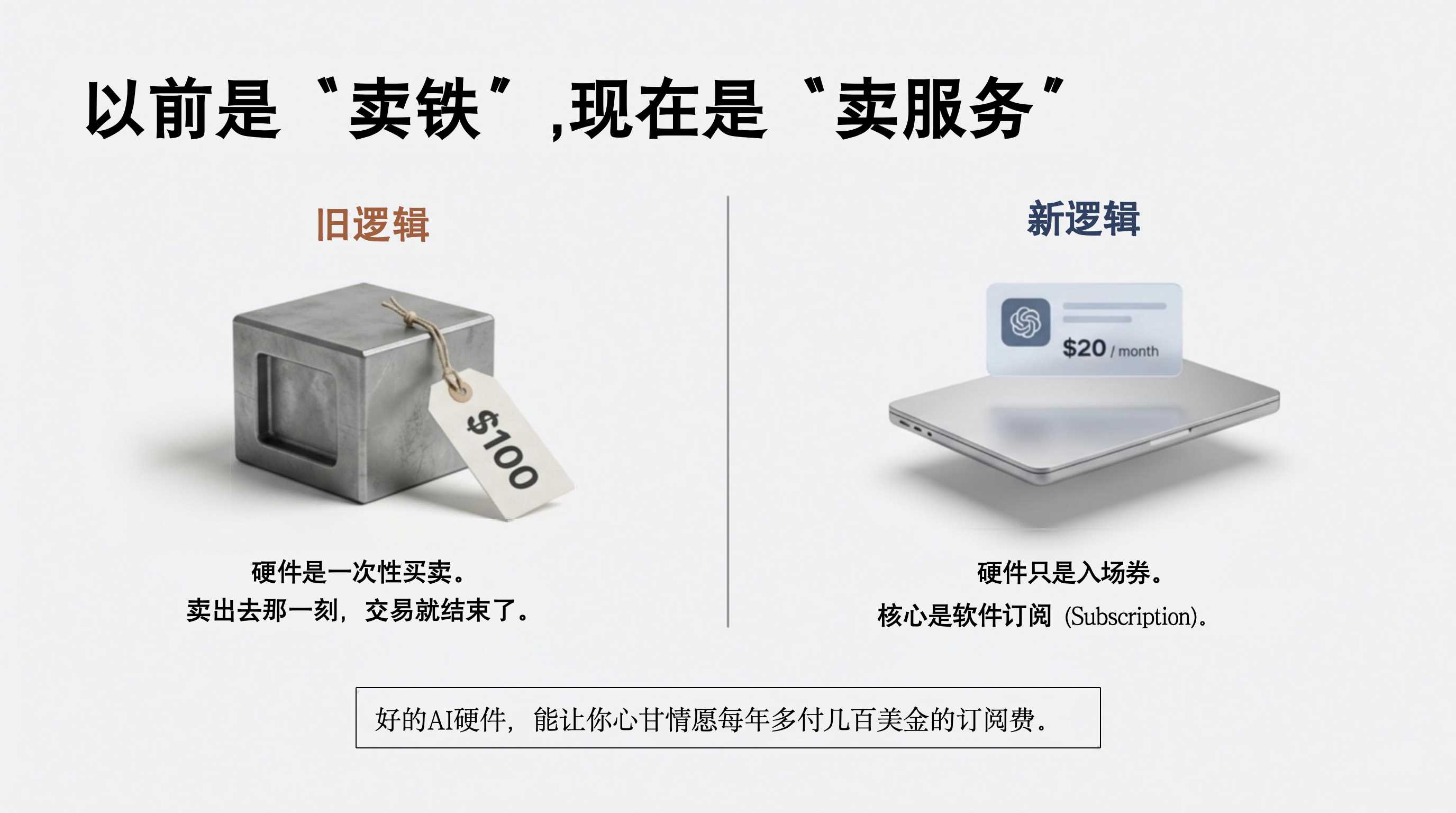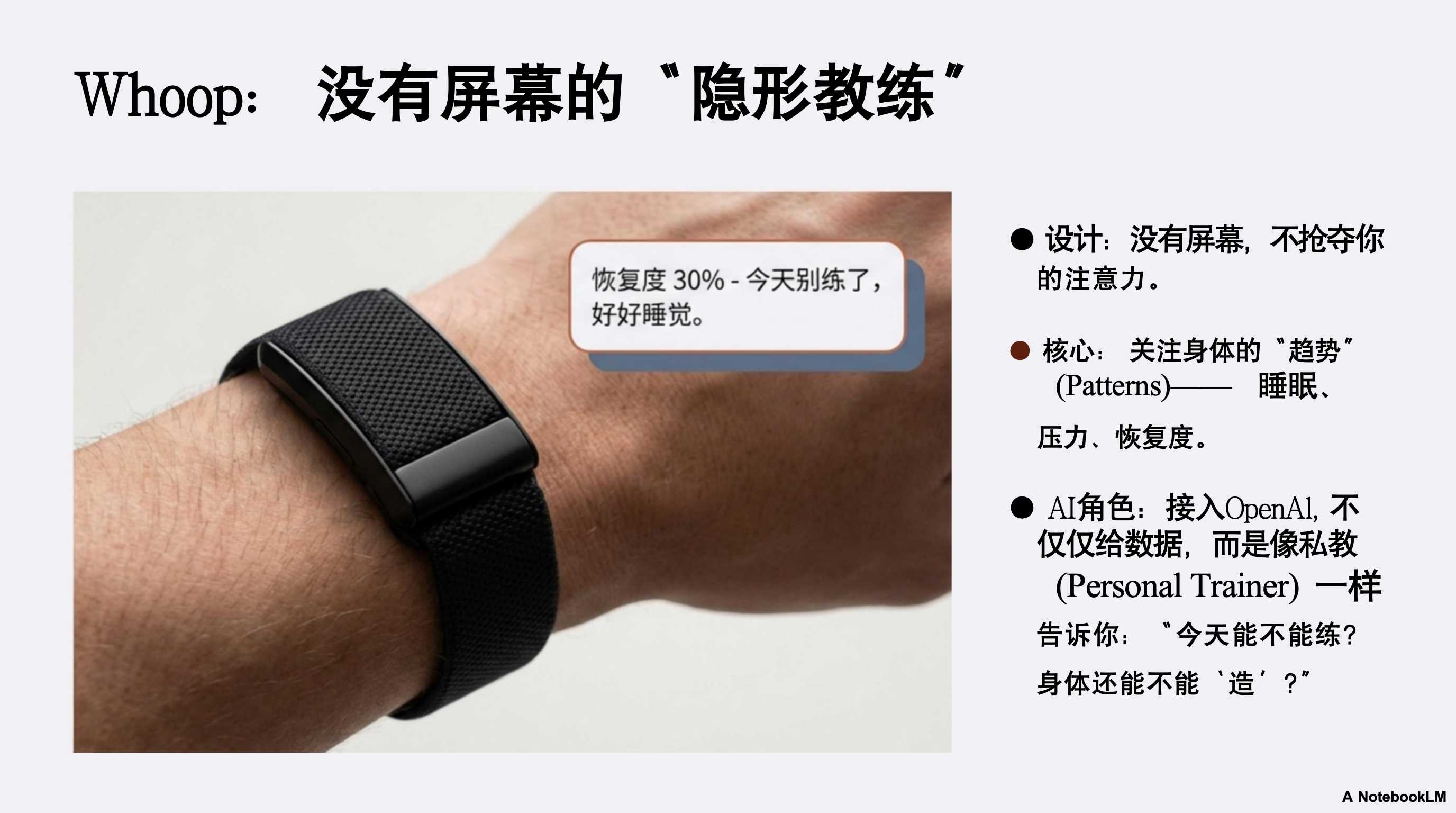 - 04:15 商业模式的迭代:硬件不再只是单纯的售卖终端,以 Plaud 和 Whoop 为例,AI 时代更健康的模式或许是“硬件+软件订阅”的双轮驱动 。