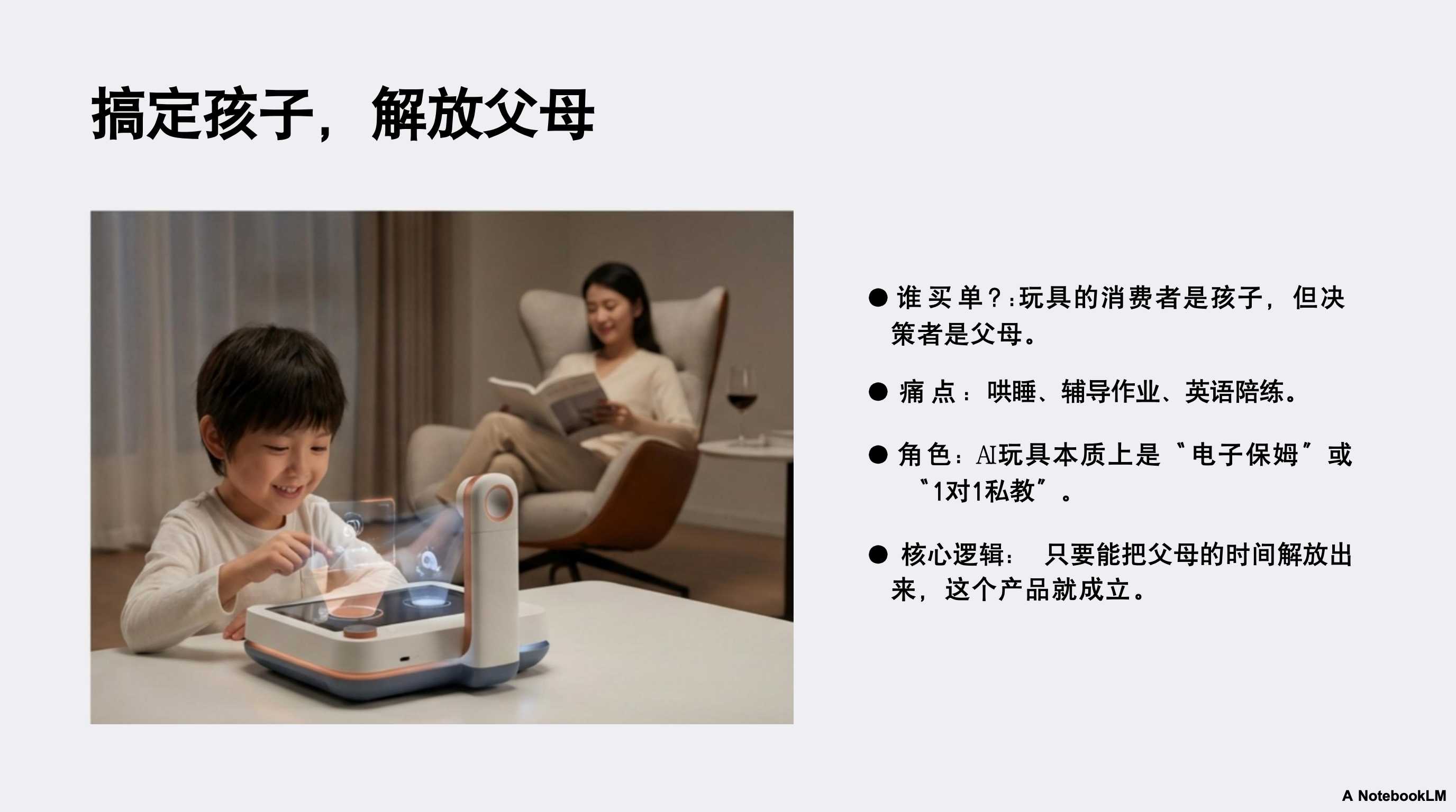 - 11:10 儿童市场的真实痛点:AI 玩具不仅仅是玩具,在家长眼中,它更像是一个能分担精力的“家庭助教”或“故事大王” 。