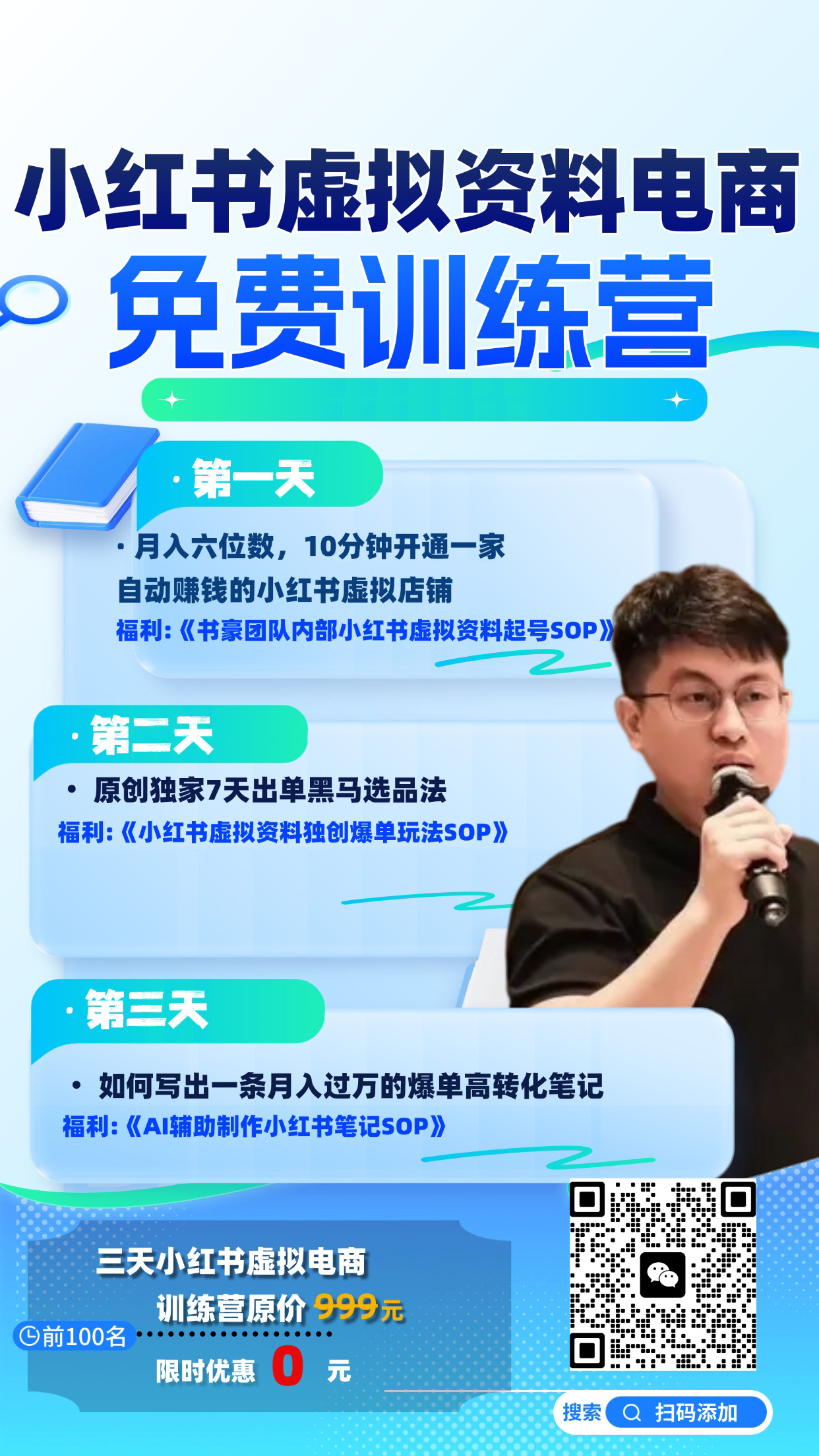 书豪还为我们的听友准备了专属福利:一份内部的小红书电商开店从0到1的手册,以及原价999元的三天直播训练营!扫描下方海报二维码,也可以wx搜索CEOSH333或haoge985985或haoge77698,备注“如果你也是听友”,前100位听友可免费领取!