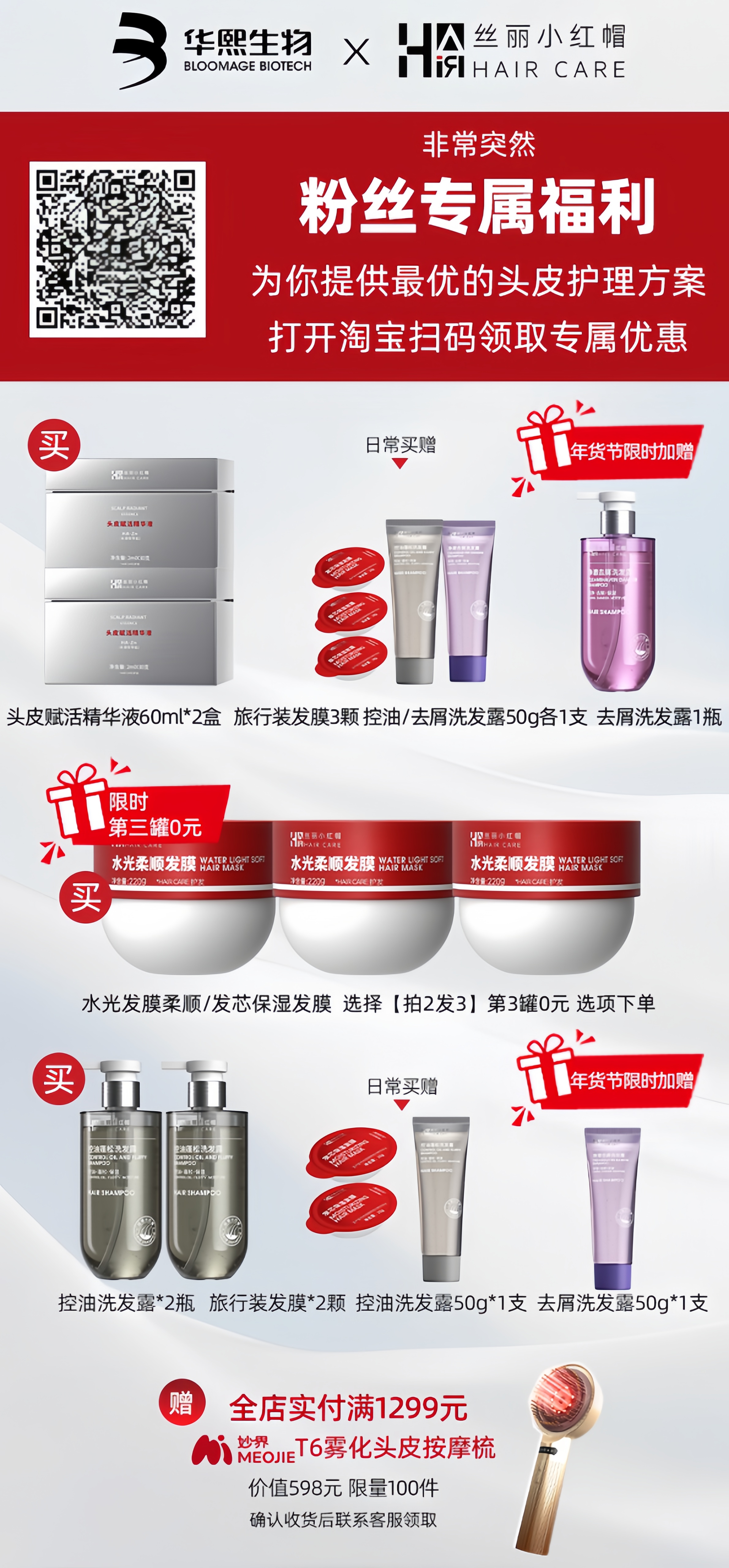 年货节期间,购买水光柔顺发膜还能限时享受拍3罐第3罐0元活动;购买控油蓬松洗发露2瓶装有限时加赠洗发水小样!购买组合装到手更实惠!
