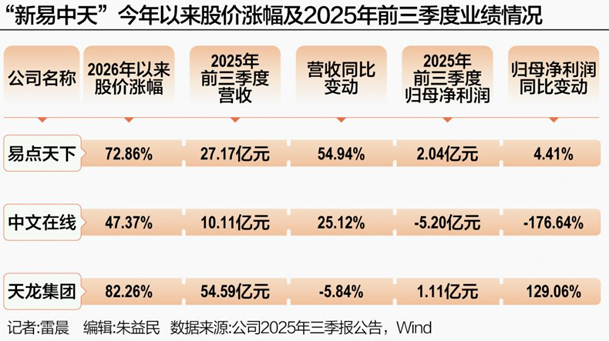 易点天下(301171.SZ)、中文在线(300364.SZ)与天龙集团(300063.SZ)在短短数个交易日内连续斩获涨停,股价年内涨幅均超过47%。