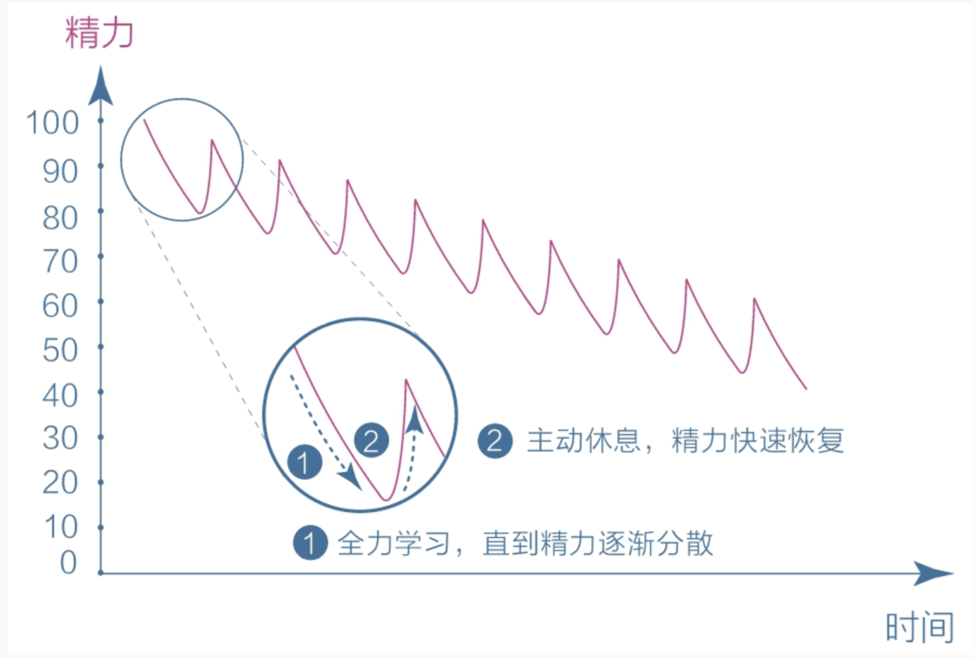 如果我们把精力水平高于70%的区域视为高效学习区,轻松者比刻苦者的高效学习的时间是更多的