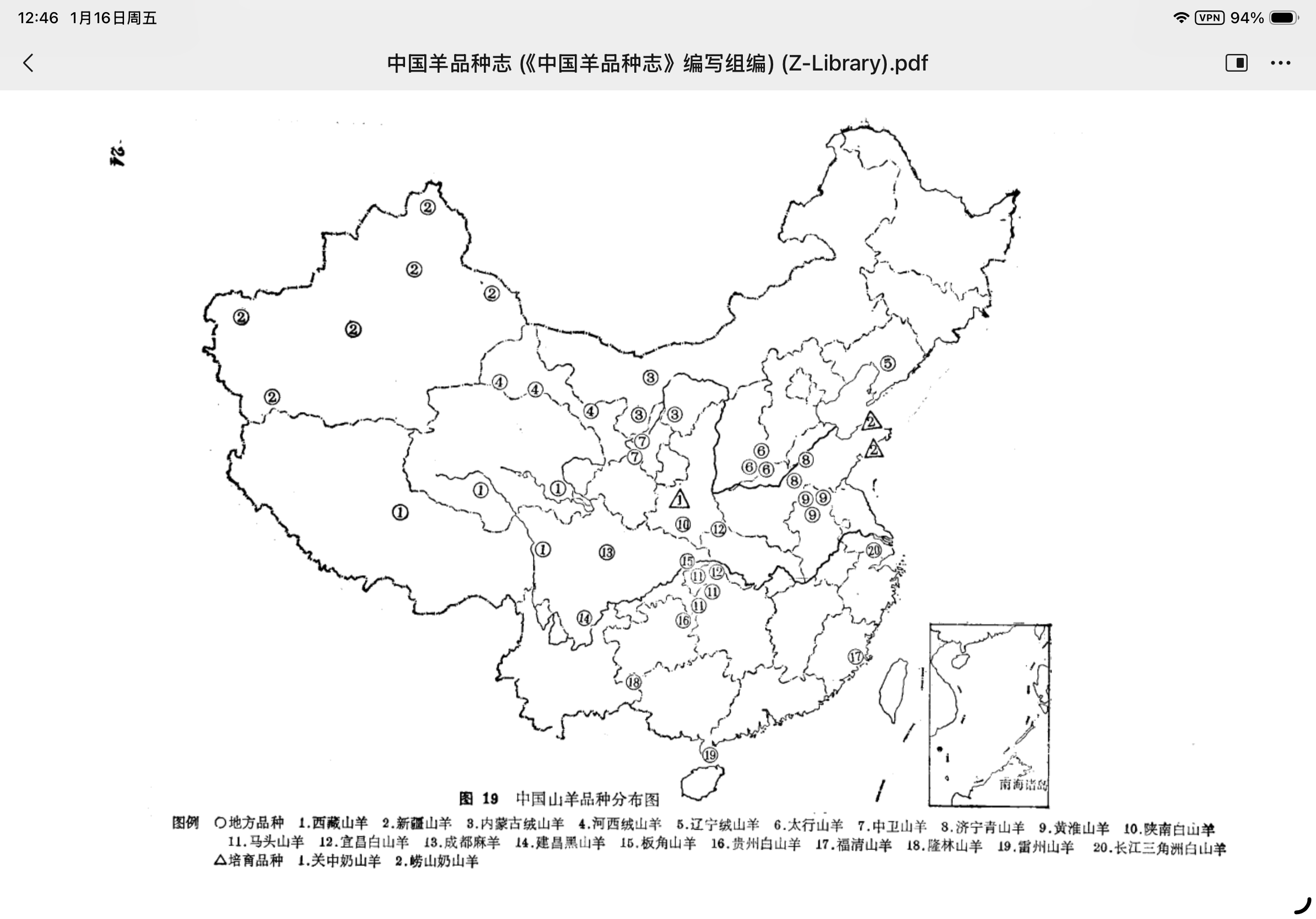 《中国羊品种志》中国山绵羊分布图(苇杭)