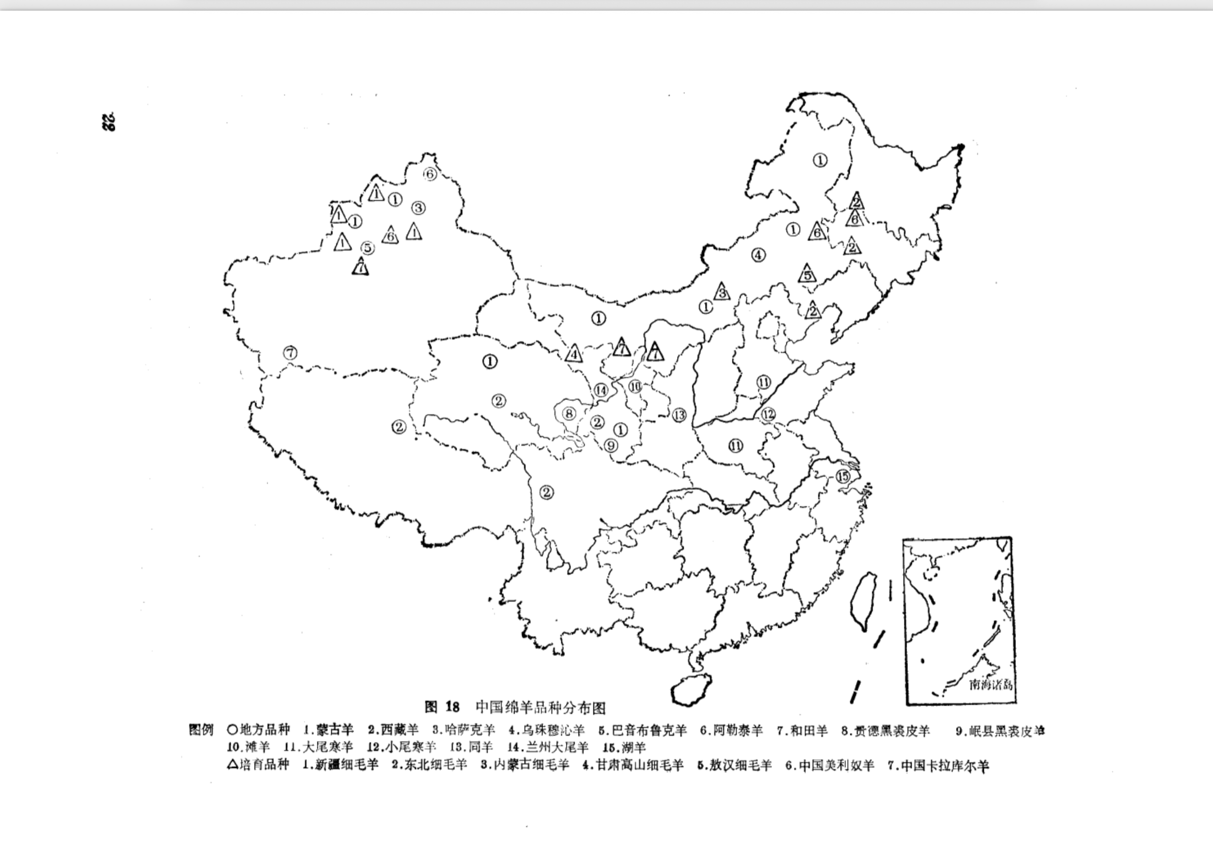 《中国羊品种志》中国山羊分布图(苇杭)