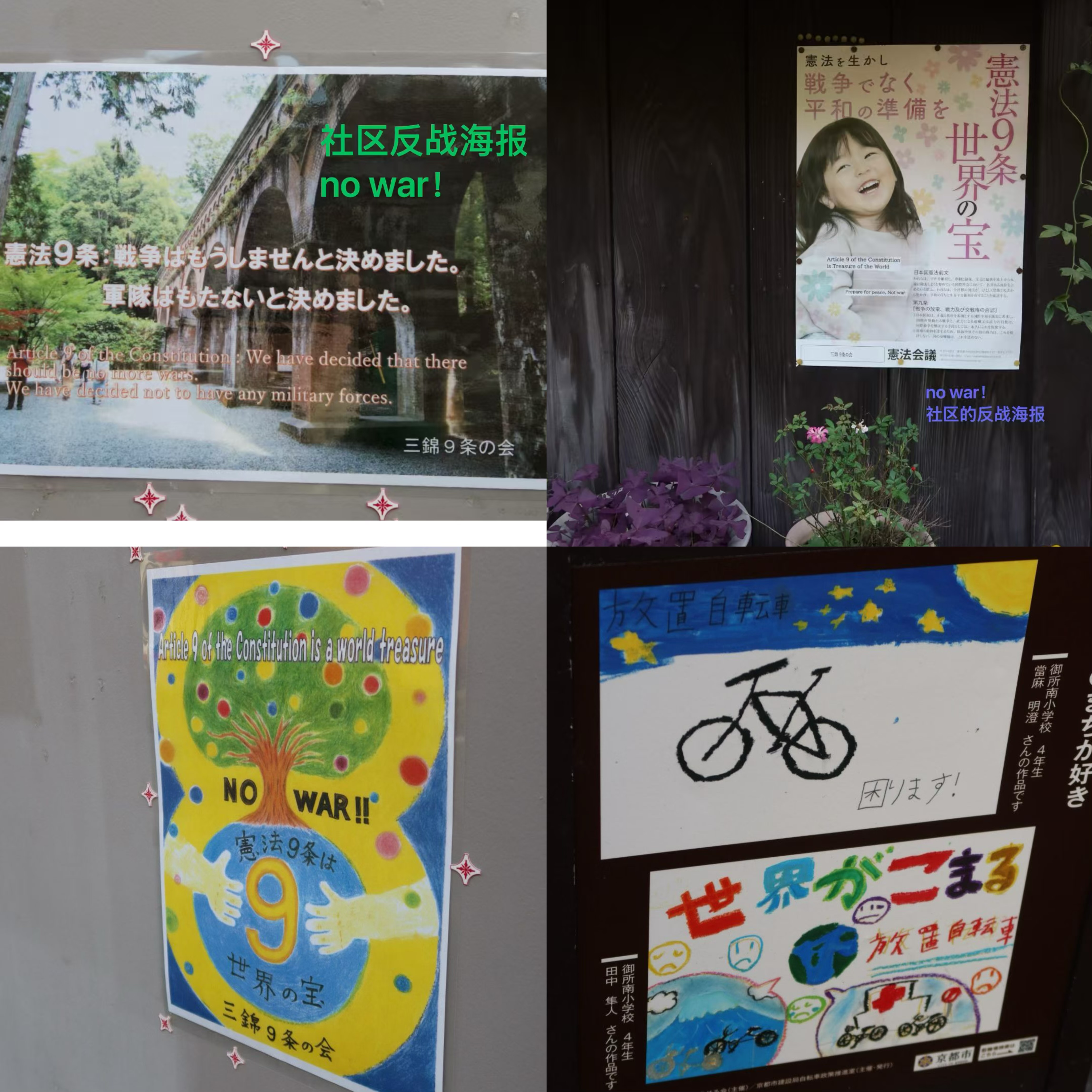 这一趟旅行印象深刻的除了枫叶,我们在复杂的交通换乘中凌乱,为餐厅预约而懊恼,感叹还是国内方便高效;我们惊讶于洗手间的干净程度、外国年轻人含量之高,更看到了民众张贴的反战海报;我们被每个景点的多年传承与维护引发了思考,也看到各地对共享单车乱停乱放的治理而大笑(原来日本人不都是那么守规矩),更在那里为友人邹芳庆祝了生日,留下特别回忆…去到实地,我们才发觉偏见与事实总有距离。