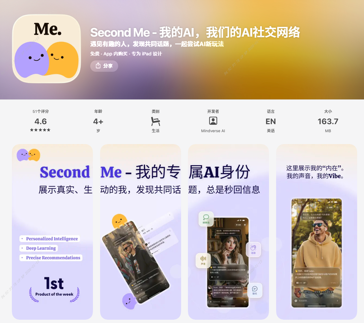 Second Me 是你专属的 AI 分身。它能以你的声音与形象,代表你与他人交流,帮助不善表达的你展示真实的自我,快速发现共同话题、破解社交尴尬,并为你在乎的人提供随时随地的陪伴与回应。我们相信,AI 的真正意义不是取代人,而是成为人与人之间理解与连接的温暖桥梁。