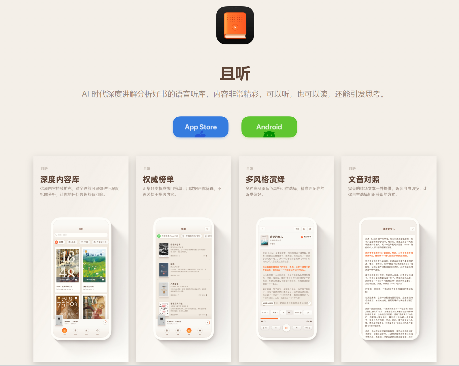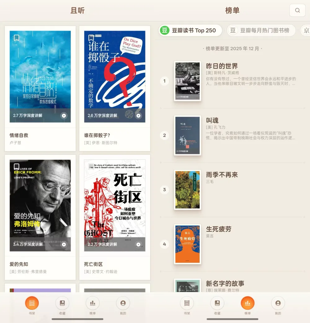 AI的大风终于吹到了读书界。2025年12月30日,罗永浩在他的科技春晚上推出了一款名为“且听”的AI听书软件。它的模式非常简单,用AI把一本书总结成几万字的文稿,然后念给读者听。用罗老师自己话说,它并不是5分钟看电影的图书版,而是一个AI时代深度解读分析好书的语音听库。