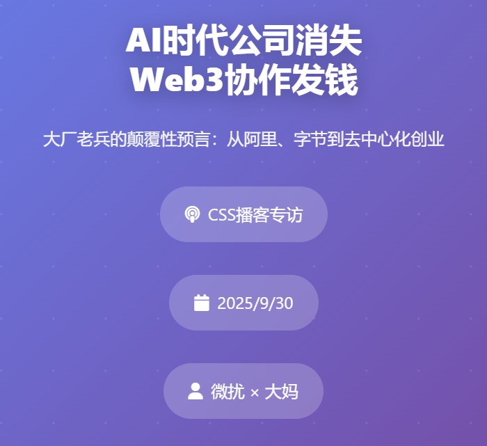 欢迎来到 CSS,全称 Crypto Startup School(加密创业学校),是 校园VC 旗下的创客频道,也是国内领先的 Web3 播客。