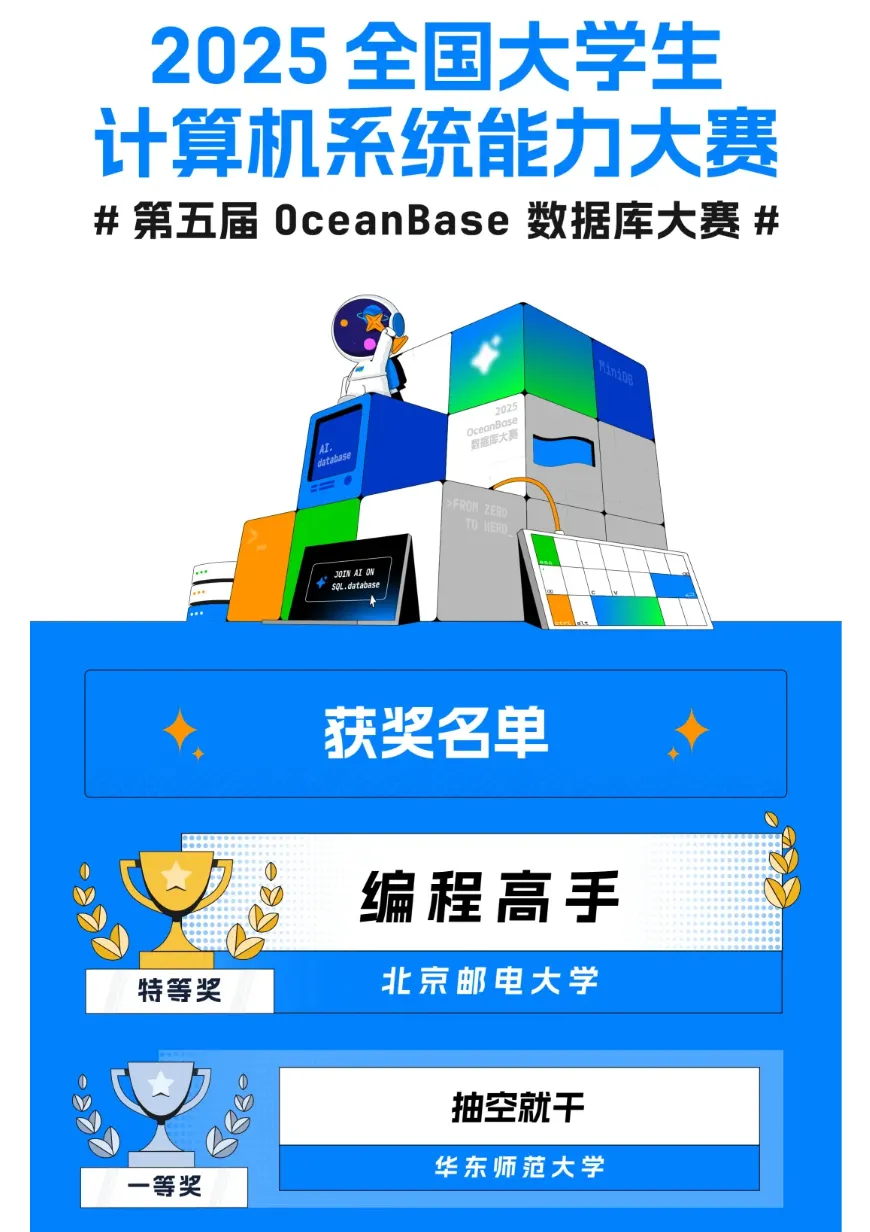 以及最近刚刚结束的2025 年全国大学生计算机系统能力大赛暨第五届 OceanBase 数据库大赛冠军和亚军队伍的选手一起聊了聊。