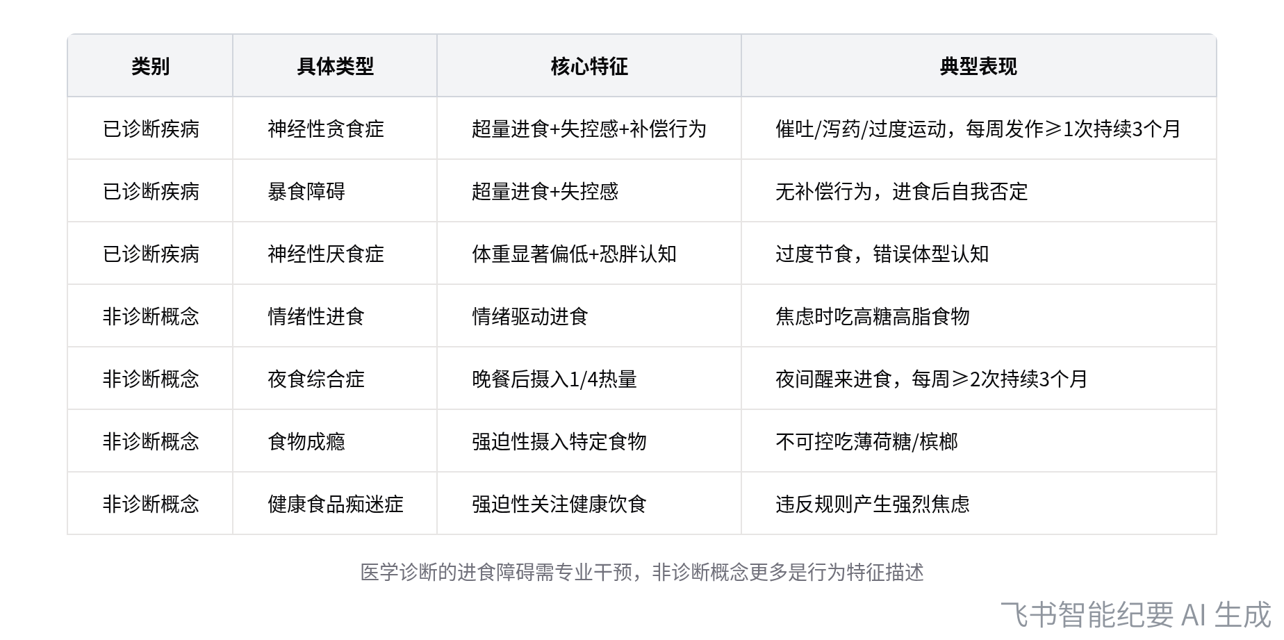 情绪性进食、夜食综合征、食物成瘾、健康食品痴迷等概念的区分。