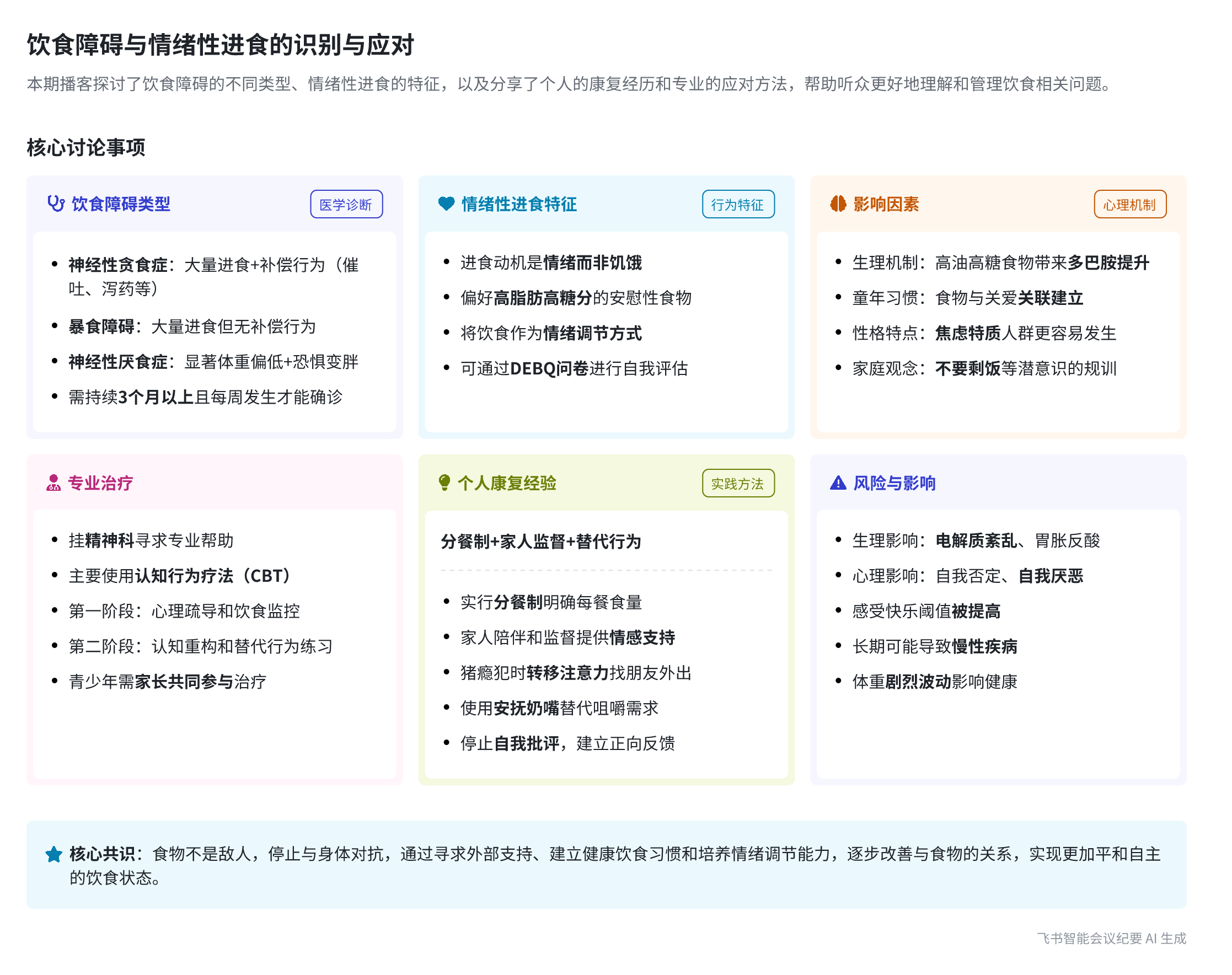 * 把进食障碍和情绪性进食的边界说清楚丨哪些情况真的需要高度警惕,哪些状态并不等于“生病”,避免把所有“想吃”“停不下来”都病理化。