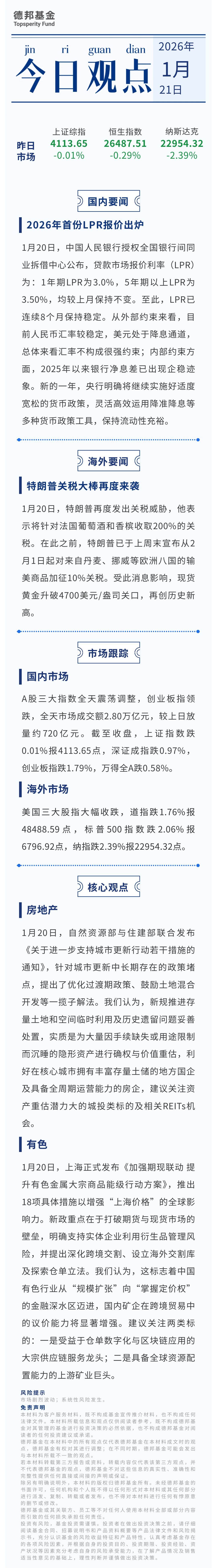 1月21日财经速递,带您最快跟踪板块表现和市场资讯!