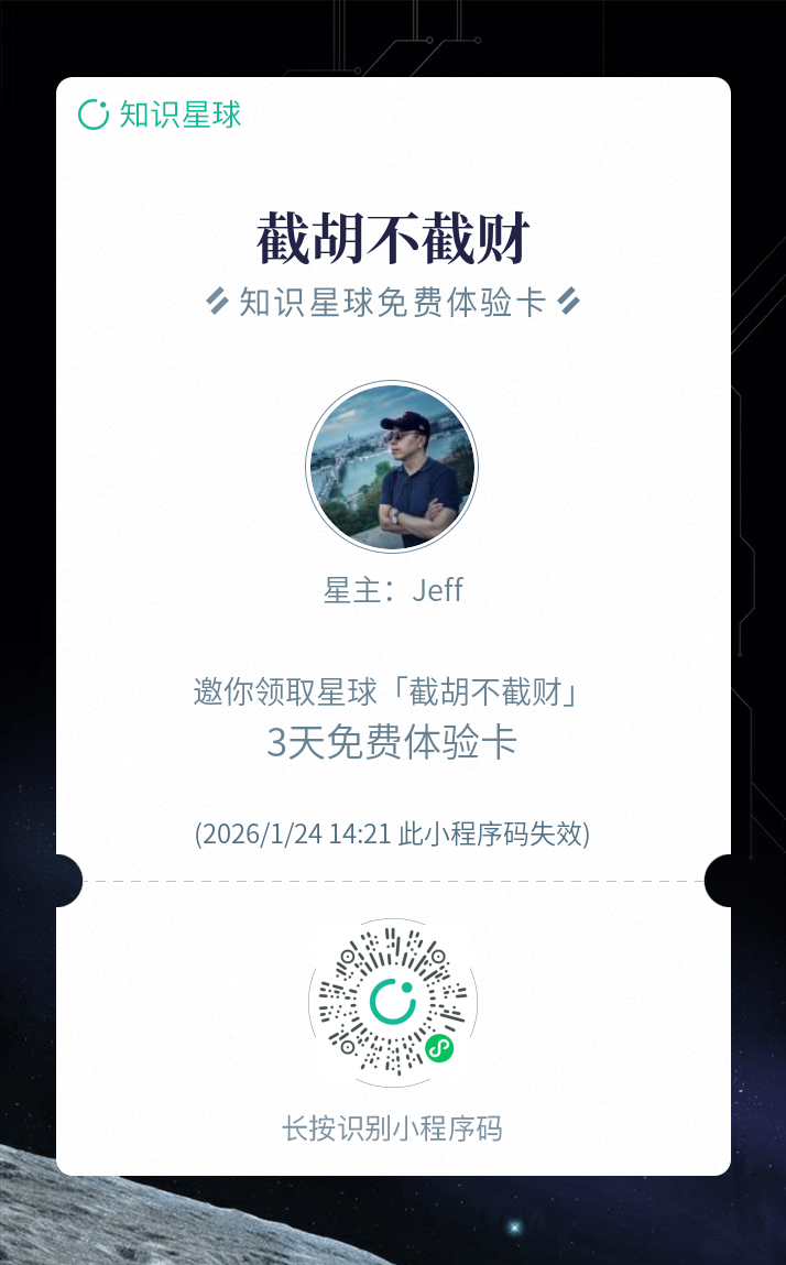 Jeff(“截胡不截财”主播 、同名知识星球,小红书:Jeff大截胡)