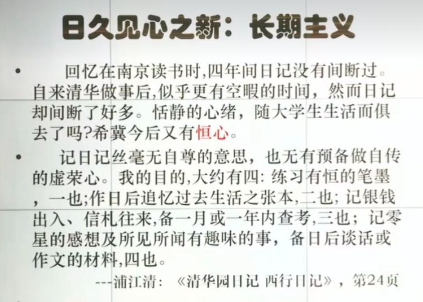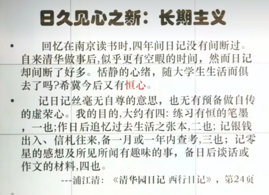 经验的经典化: 通过《清华园日记》展示了作者是如何将日常经历转化为可供未来回顾和学习的历史记录。这种方式使得看似平凡的日常经历被赋予了历史价值和教育意义。