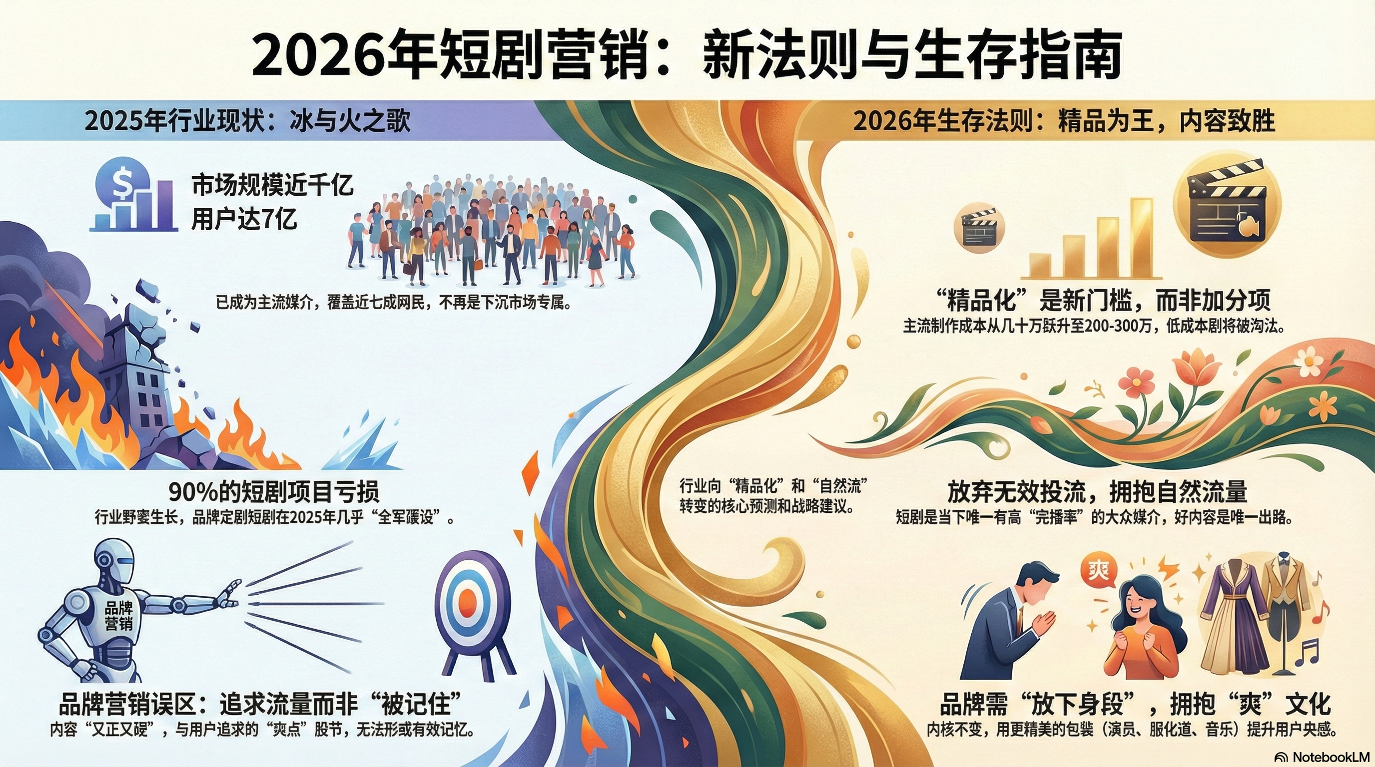 - “投流解决不了完播率,2026年短剧将回归内容自然流的赛马时代。”