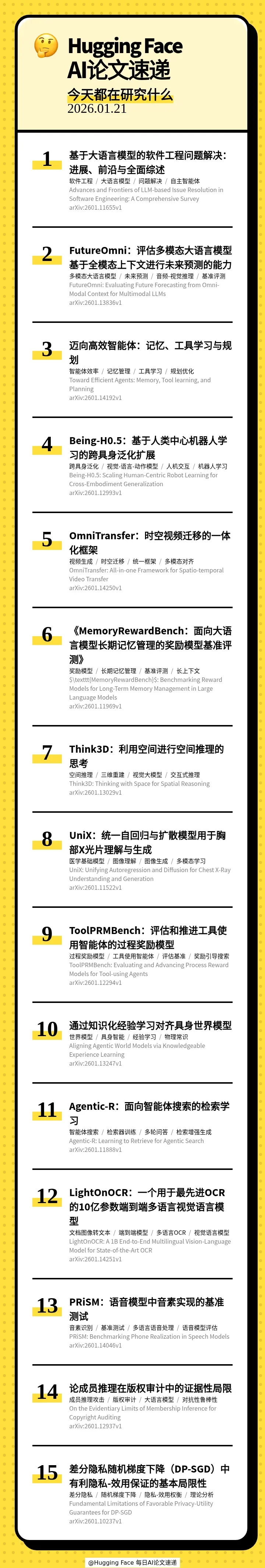 本期的 15 篇论文如下: