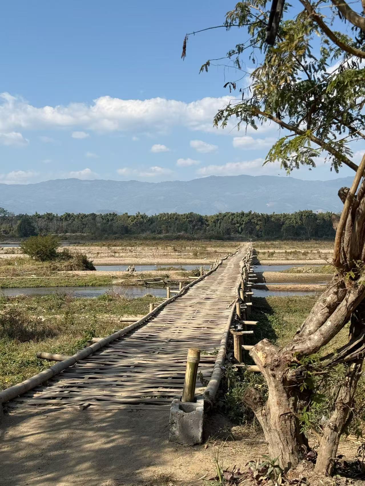 横跨在大盈江上,每年雨季前拆除(4月左右)、旱季重建的临时桥(9月左右),体现人与河流的共生智慧。
